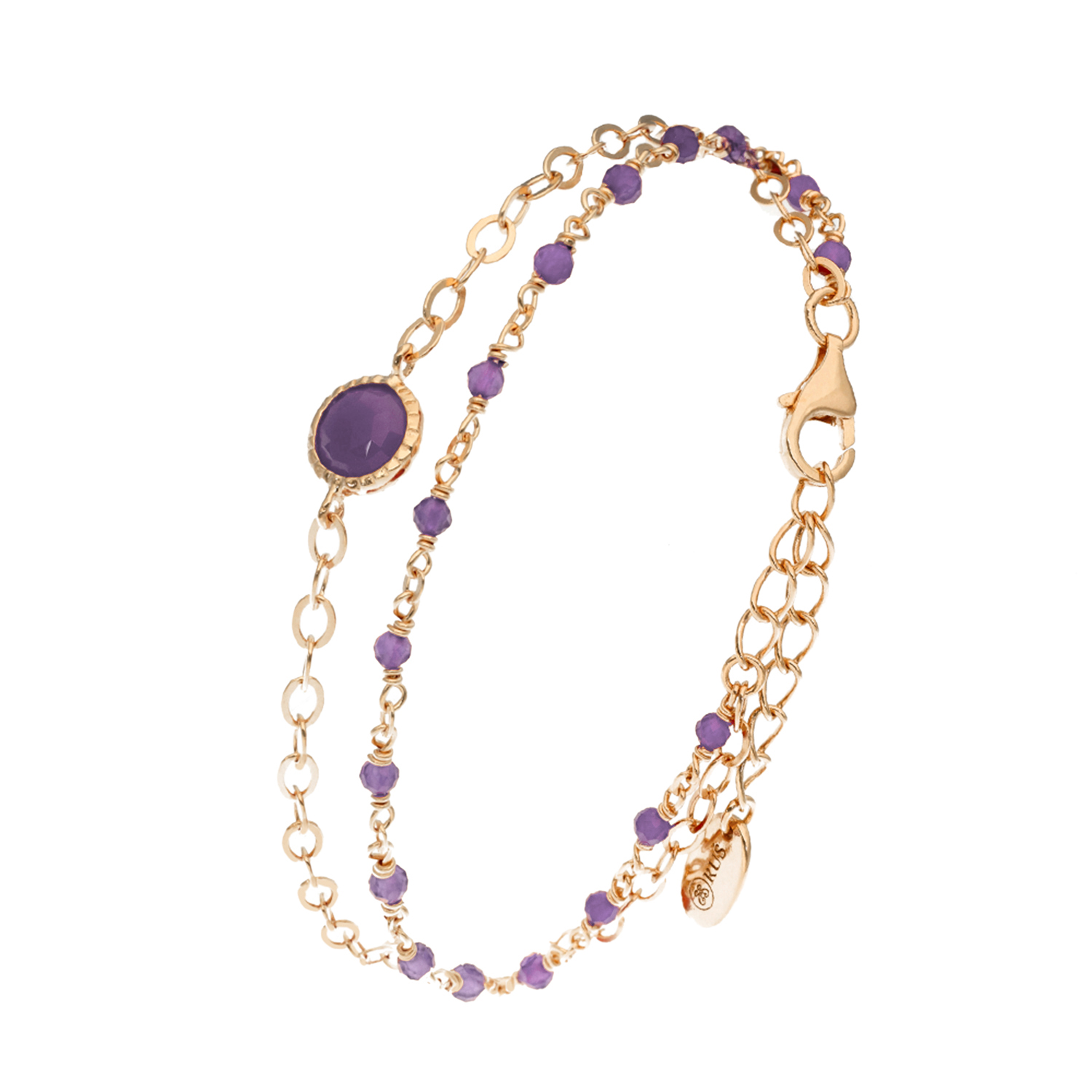 Bracelet en argent doré double chaine pierres naturelles améthyste