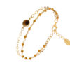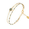 Bracelet en argent doré double chaine pierres naturelles quartz rose fraise médaillon quartz rose fraise