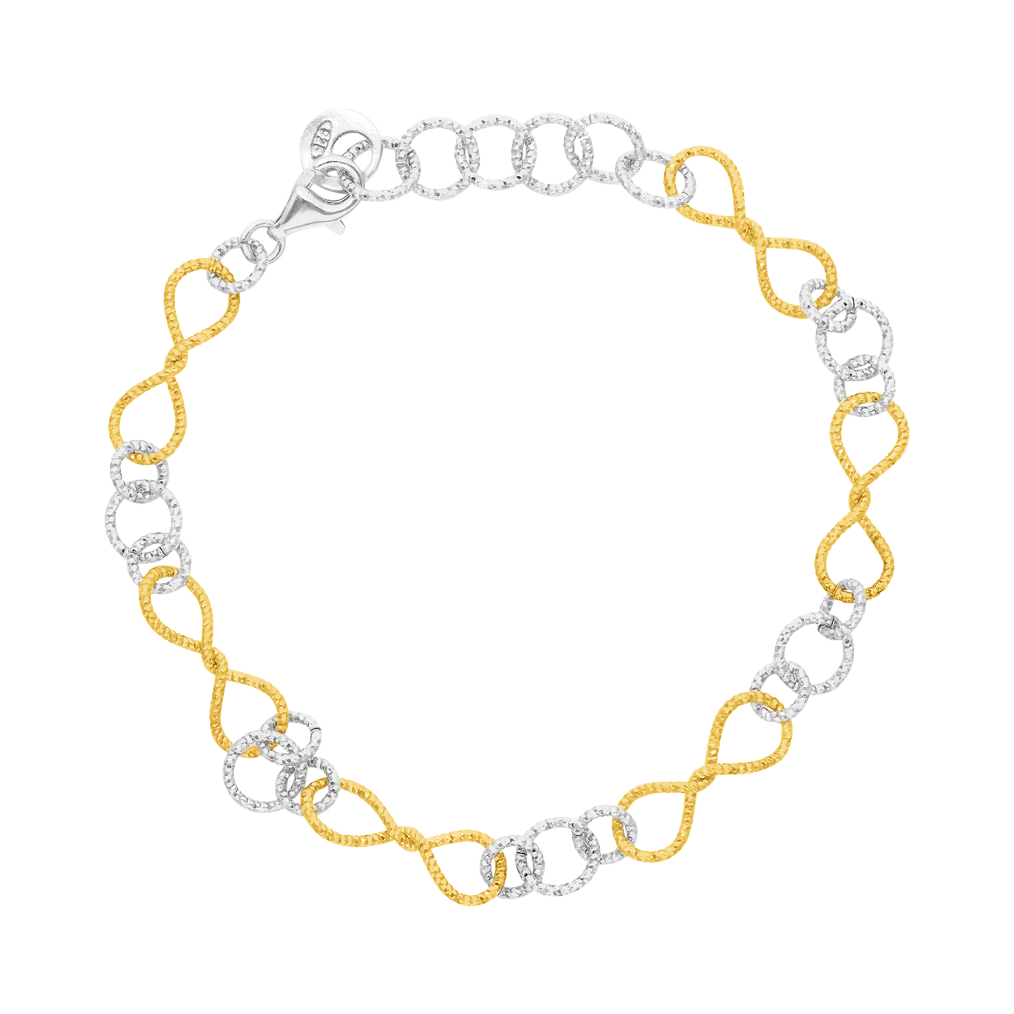 Ce bracelet torsadé est orné de diamants étincelants qui captent la lumière et illuminent votre style. Chaque pierre précieuse est soigneusement sertie pour mettre en valeur sa brillance naturelle, ajoutant une touche de glamour à votre look. Que vous le portiez seul ou associé à d’autres bijoux, ce bracelet en argent doré rhodié diamanté ne passera pas inaperçu et attirera tous les regards.