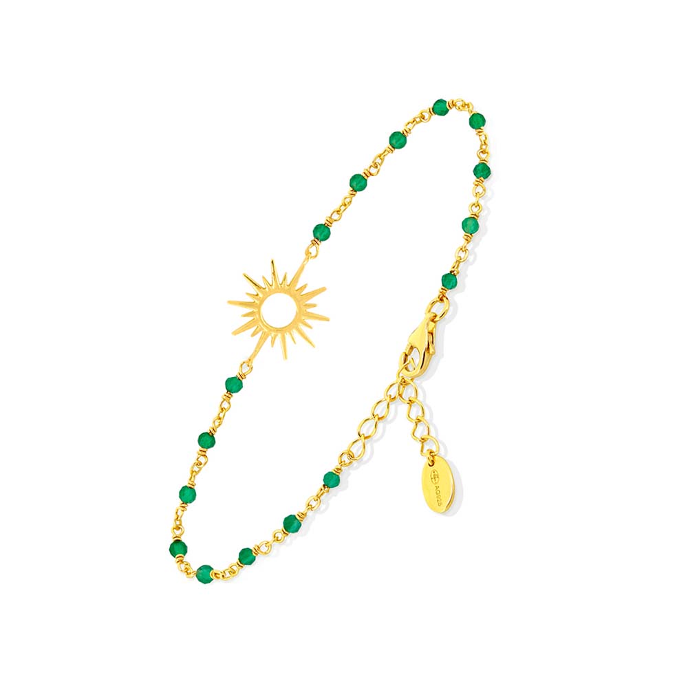 Bracelet en argent pierre onyx vert soleil doré : une touche de couleur et d’élégance