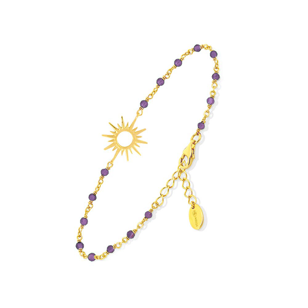 Ce bracelet Bracelet en argent soleil doré pierres amethyste vous donnera un style bohème chic, sur un ton de couleur pastel . Grace à sa chaine ajustable, sa taille réglable facilitera votre choix.