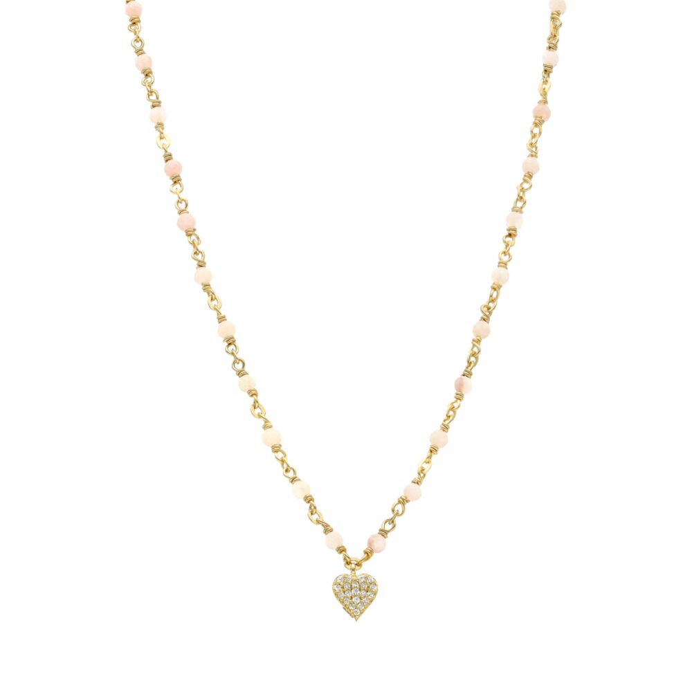 Collier argent doré cœur diamanté pierres naturelles opale rose