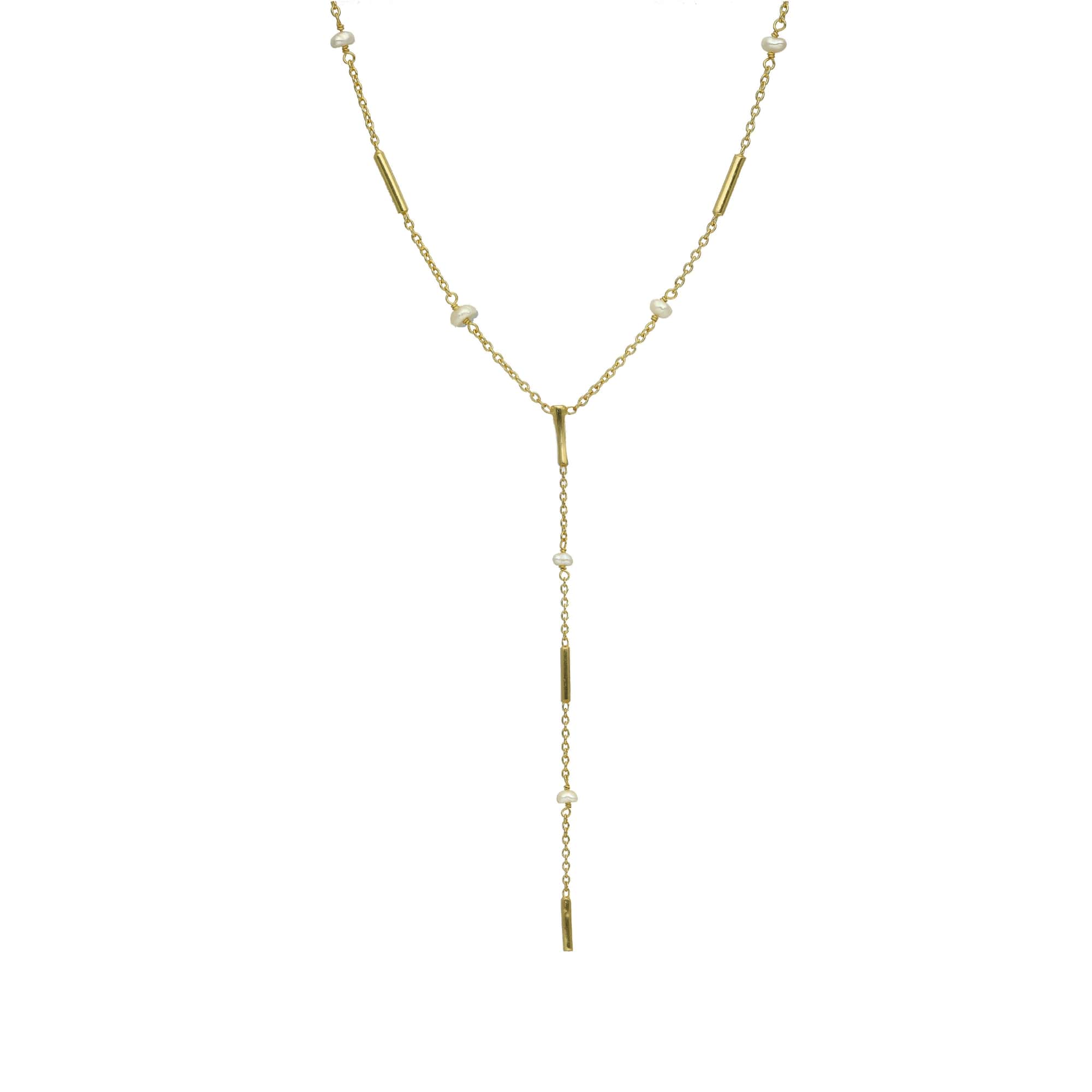 Collier argent doré cravate barrettes et perles naturelles blanches