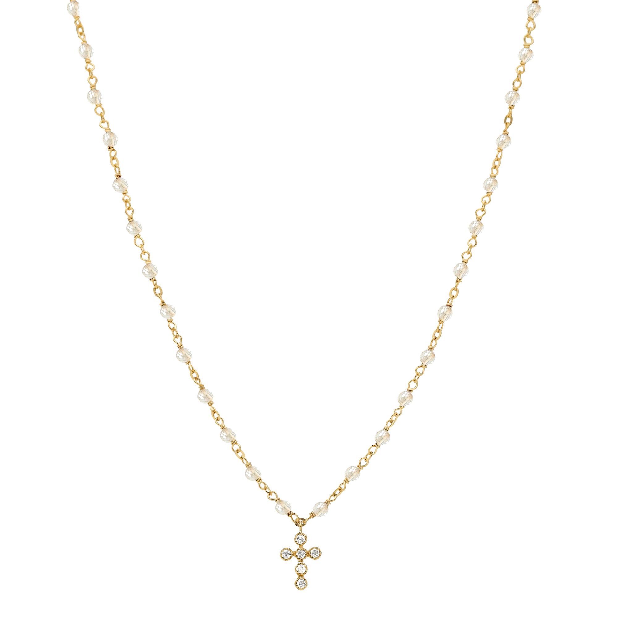 Collier argent doré croix en zirconium blanc et perles naturelles blanches