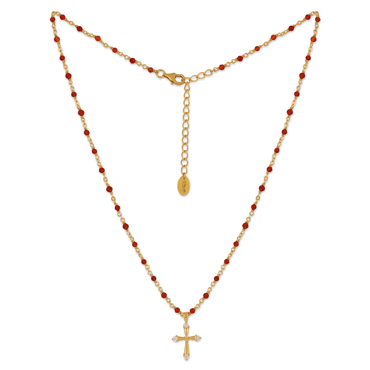 Collier argent doré croix et pierres naturelles rouge