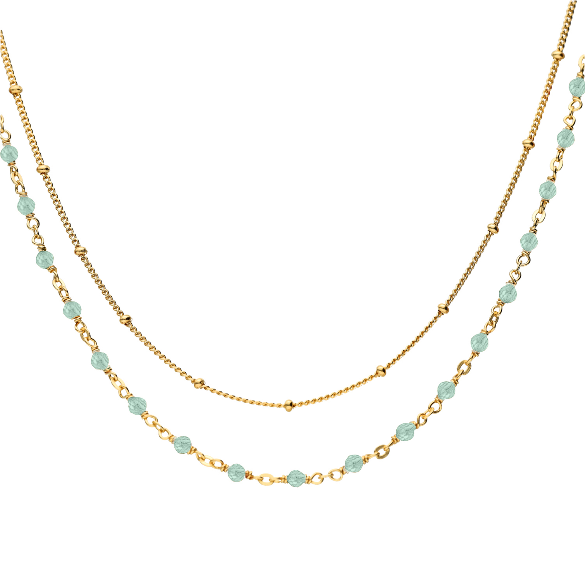 Description du collier argent doré double chaine et pierre naturelle amazonite