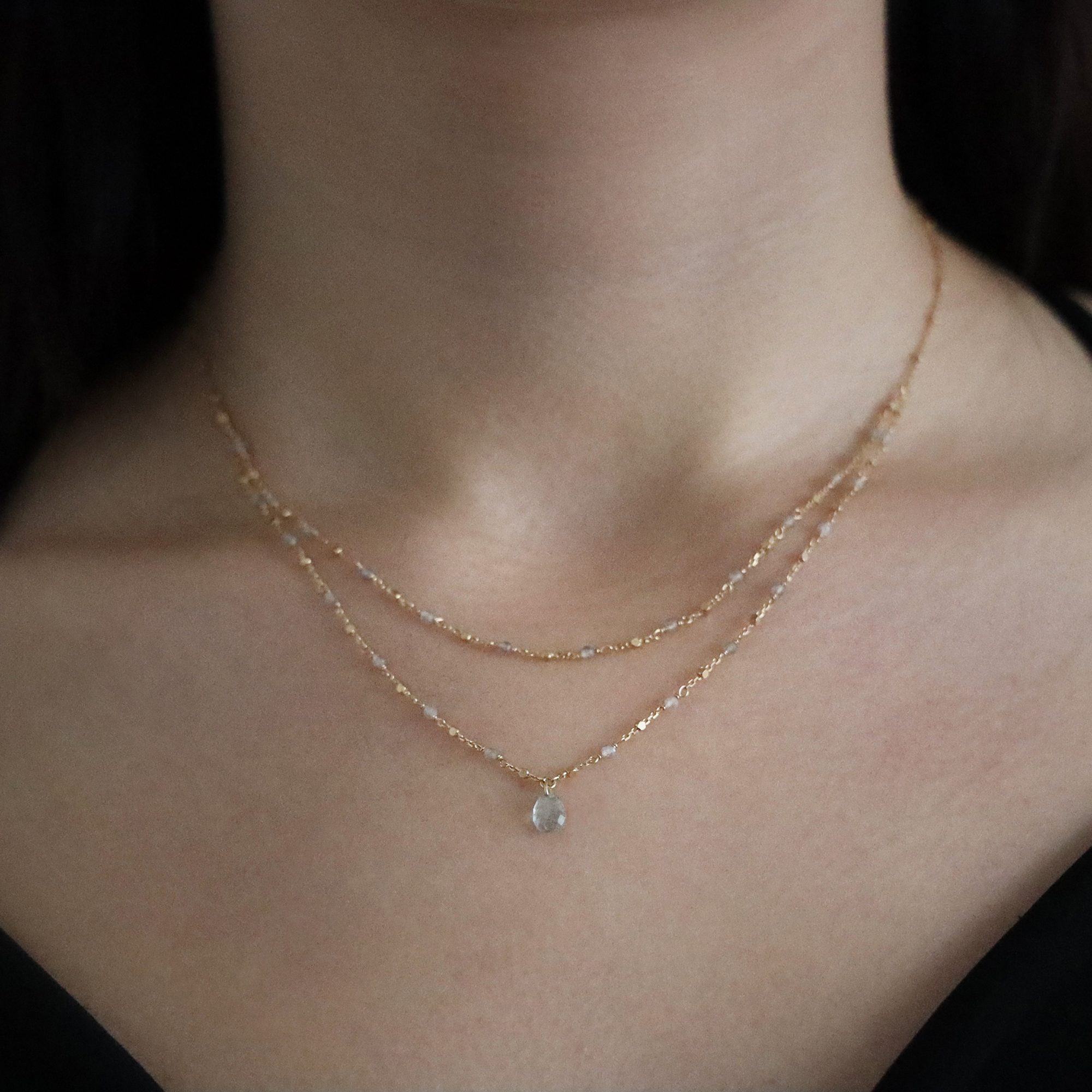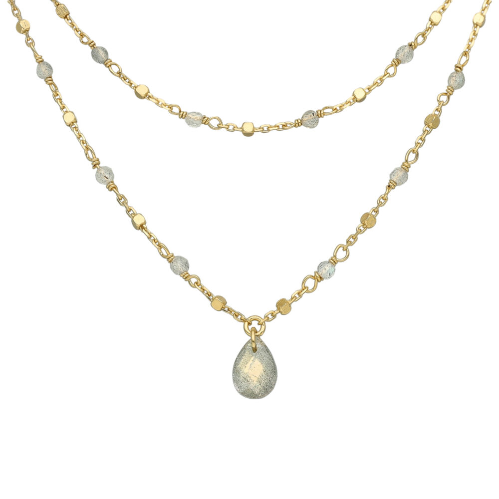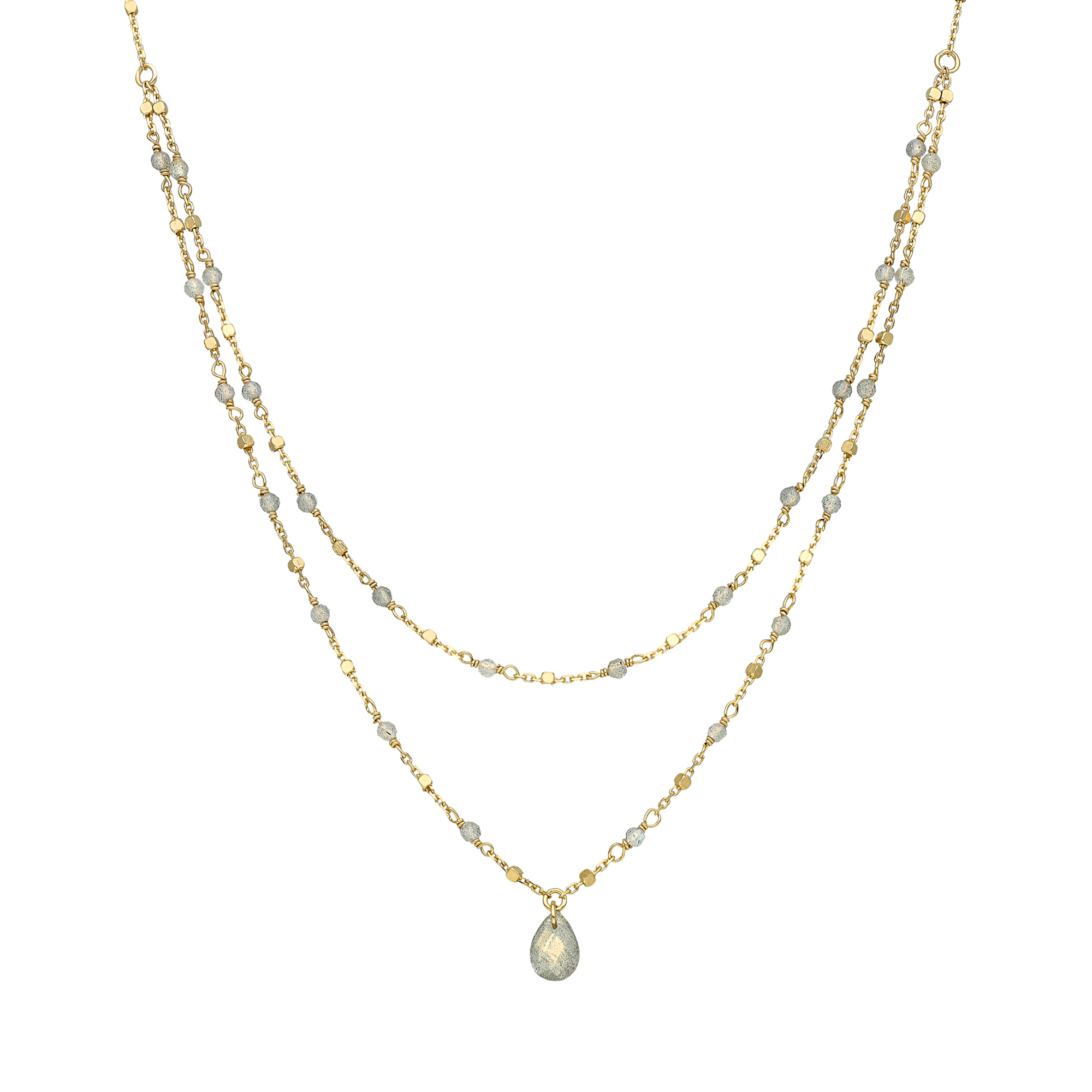 Collier argent doré double chaine goutte pierres naturelles labradorite