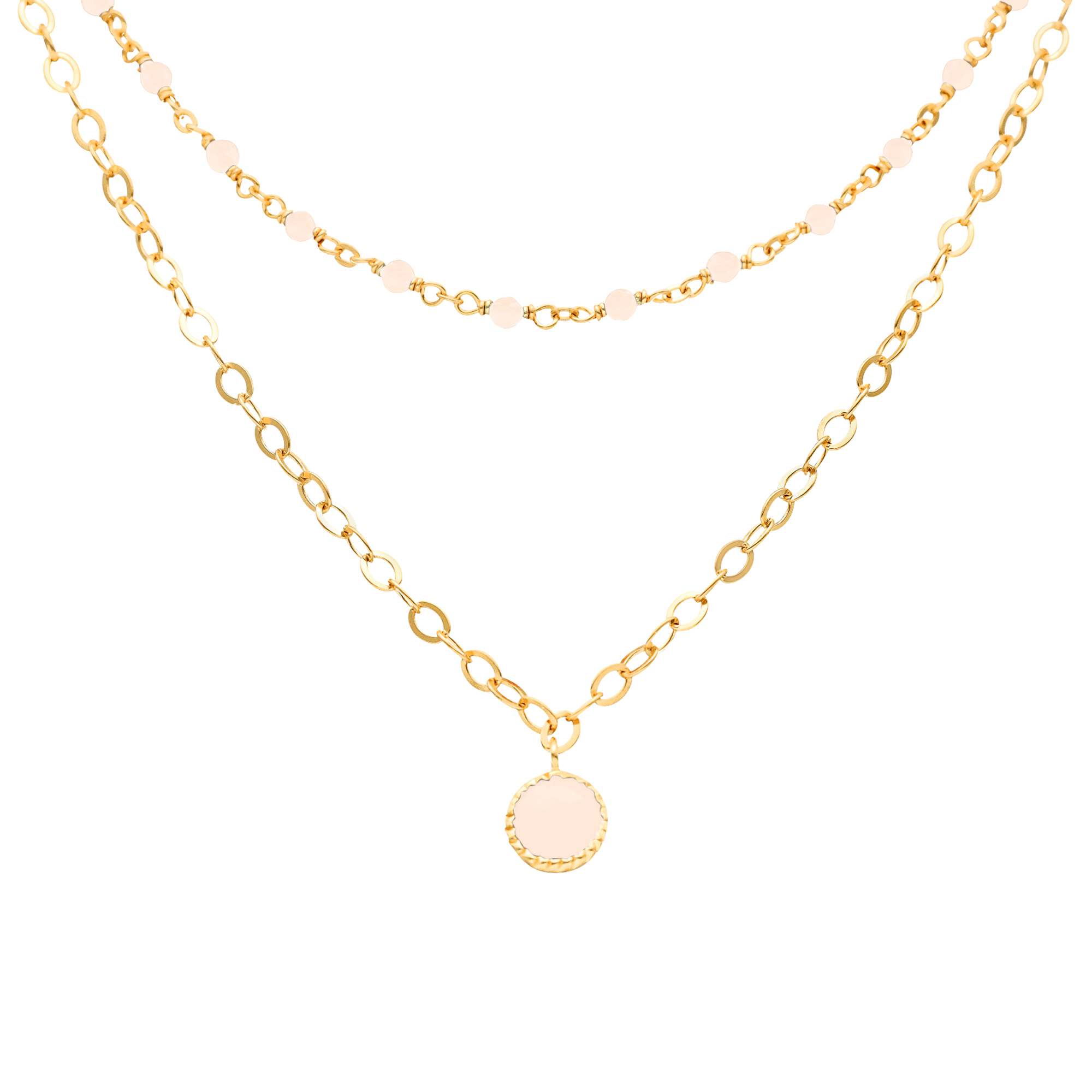 Description du produit : Collier argent doré double chaine pampille et pierres opale rose