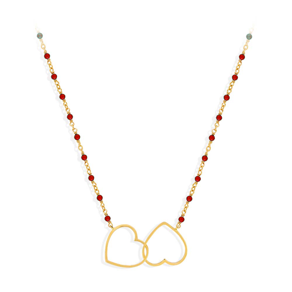 Ce collier est bien plus qu’un simple accessoire de mode, c’est un symbole de l’amour et de la passion. Les deux cœurs entrelacés représentent l’union et la complicité entre deux personnes. Offrir ce collier à un être cher est une façon de lui montrer à quel point il compte pour vous. La pierre rouge symbolise également la force intérieure et la détermination, en faisant un cadeau parfait pour une personne forte et passionnée.