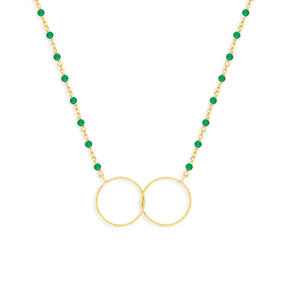 Vous serez séduite par ce magnifique collier en argent doré double rond avec ses pierres en pierre onyx vert. Vous ferez fureur avec ce joli bijou qui peut être aussi une belle idée cadeau, adoptez-le sans plus attendre ! Vous serez la plus belle avec cette belle création!