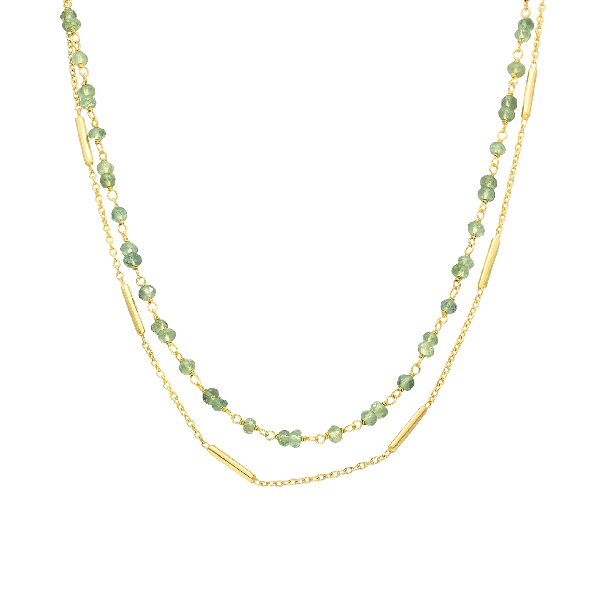Collier argent doré doubles chaînes barrettes et perles naturelles aventurine