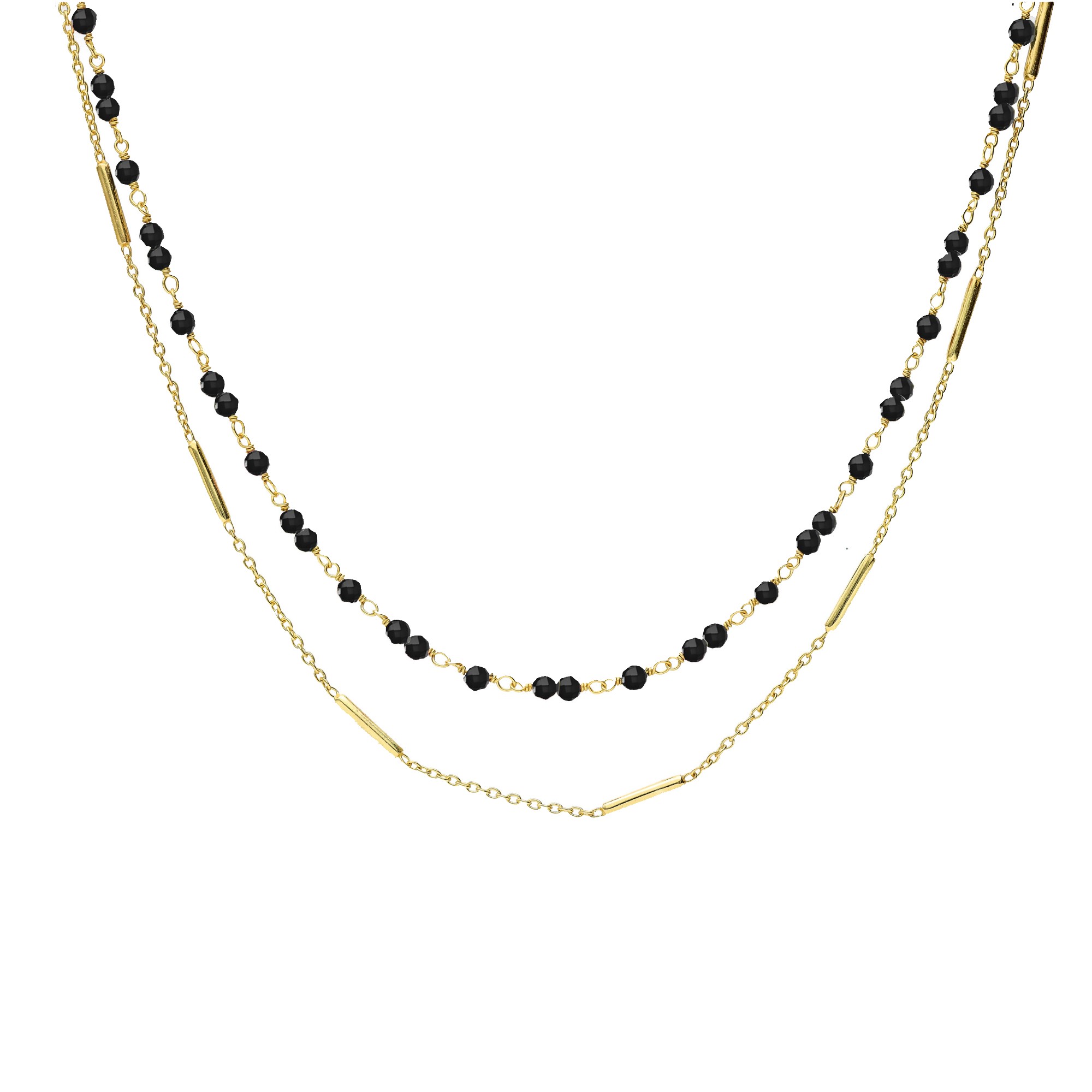 Collier argent doré doubles chaînes barrettes et perles naturelles Spinelle noire
