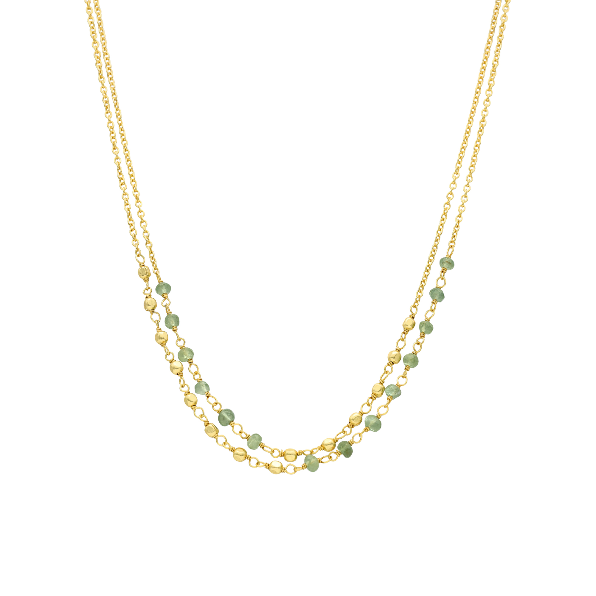 Collier argent doré doubles chaînes pierre aventurine