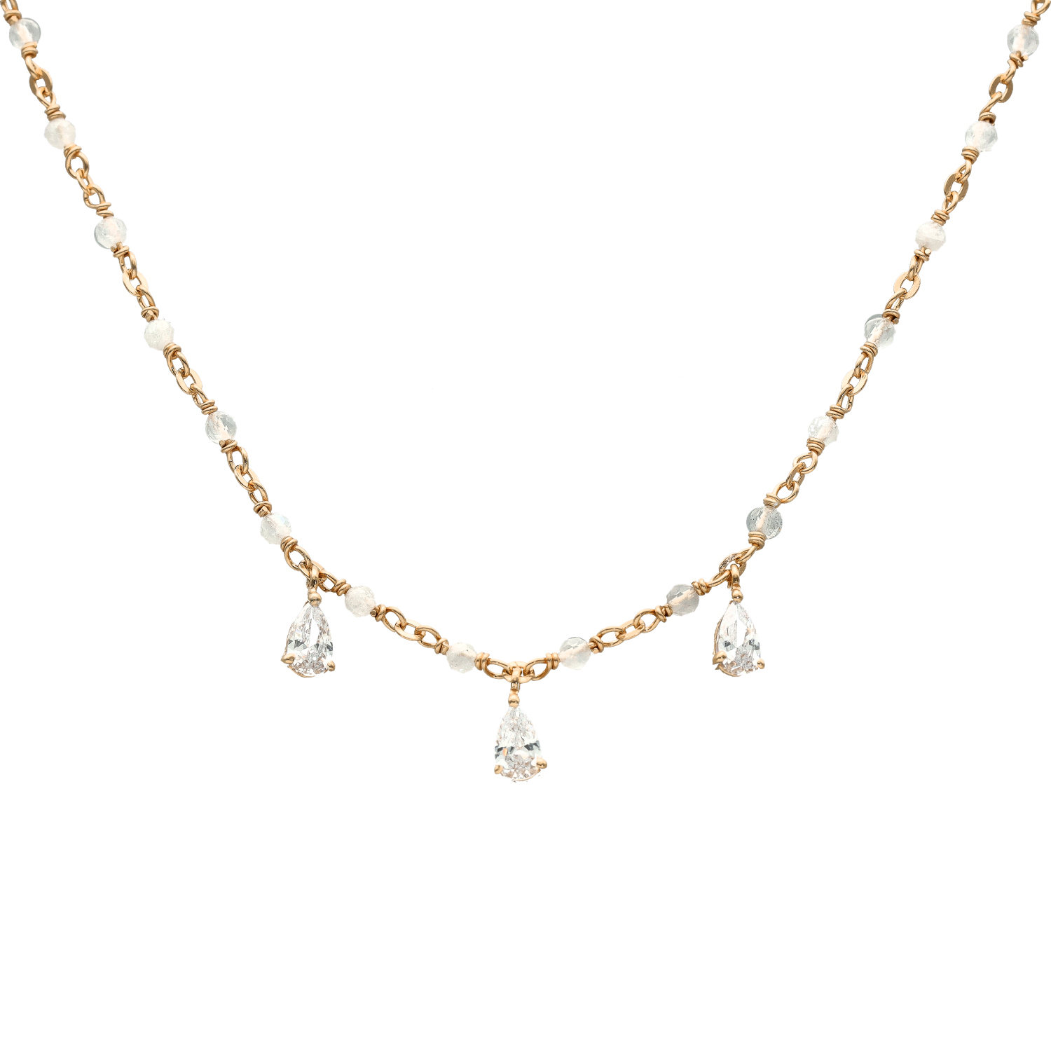 Collier argent doré et pierres de lune naturelles blanches