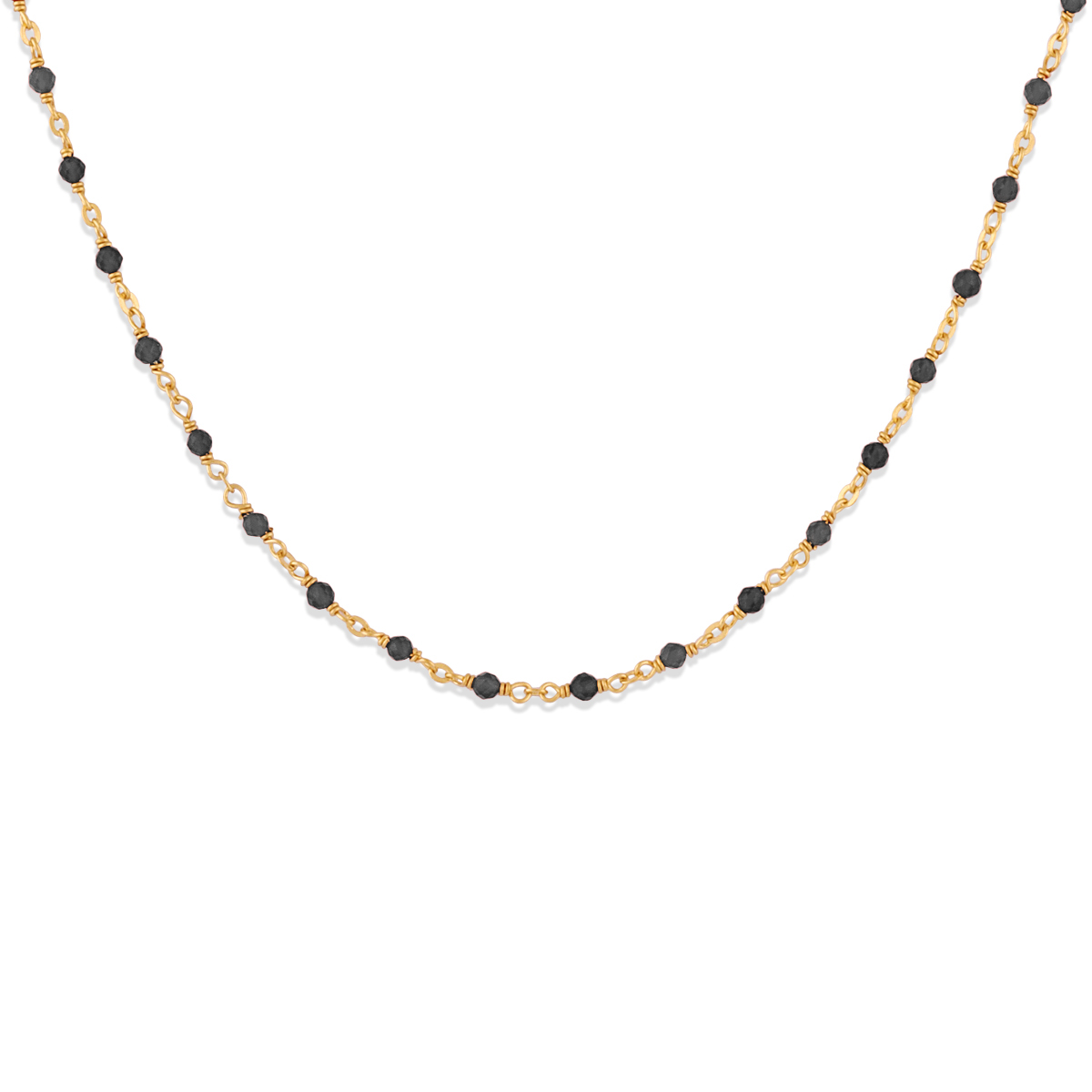 Collier argent doré et pierres naturelles noires