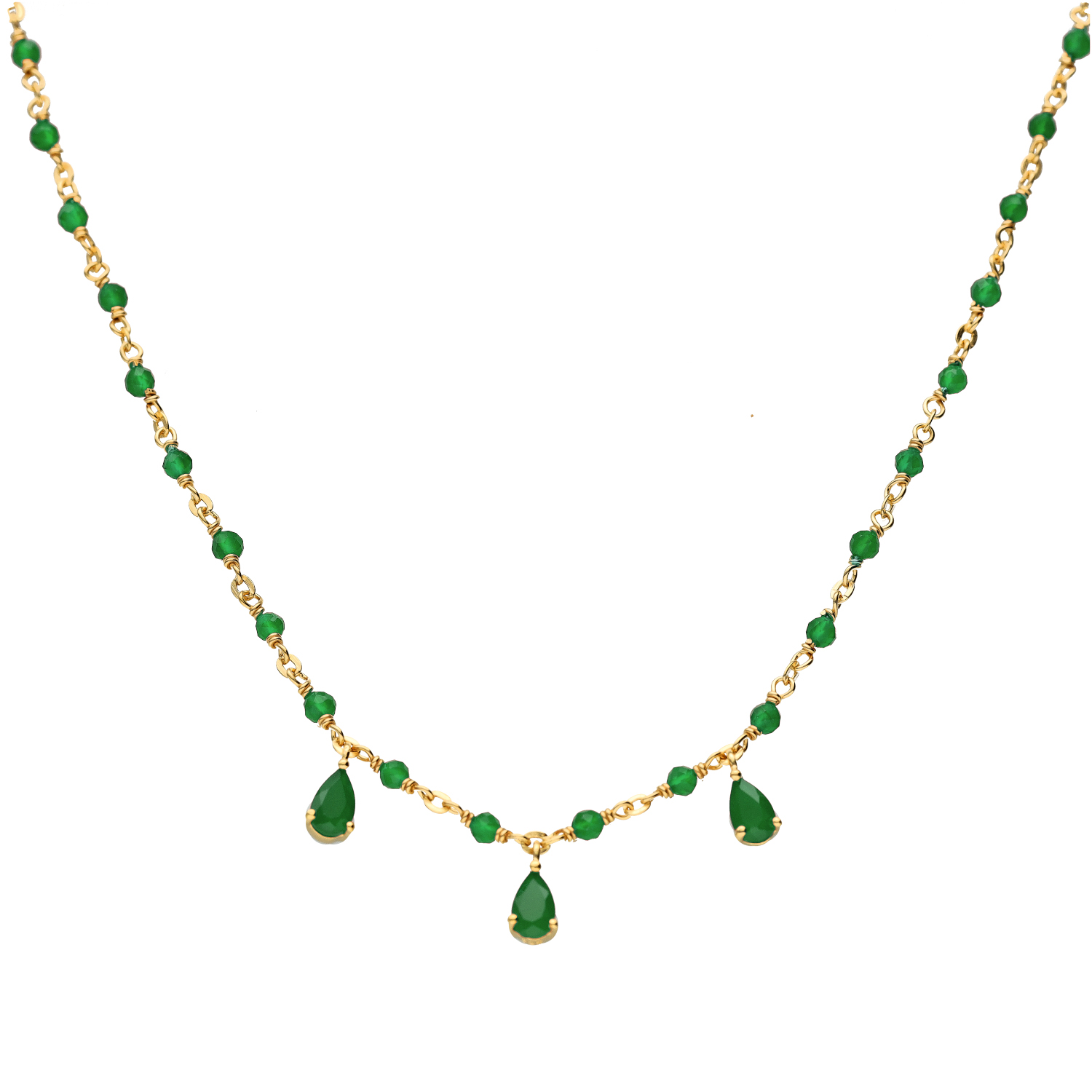 Collier argent doré et pierres naturelles onyx vert