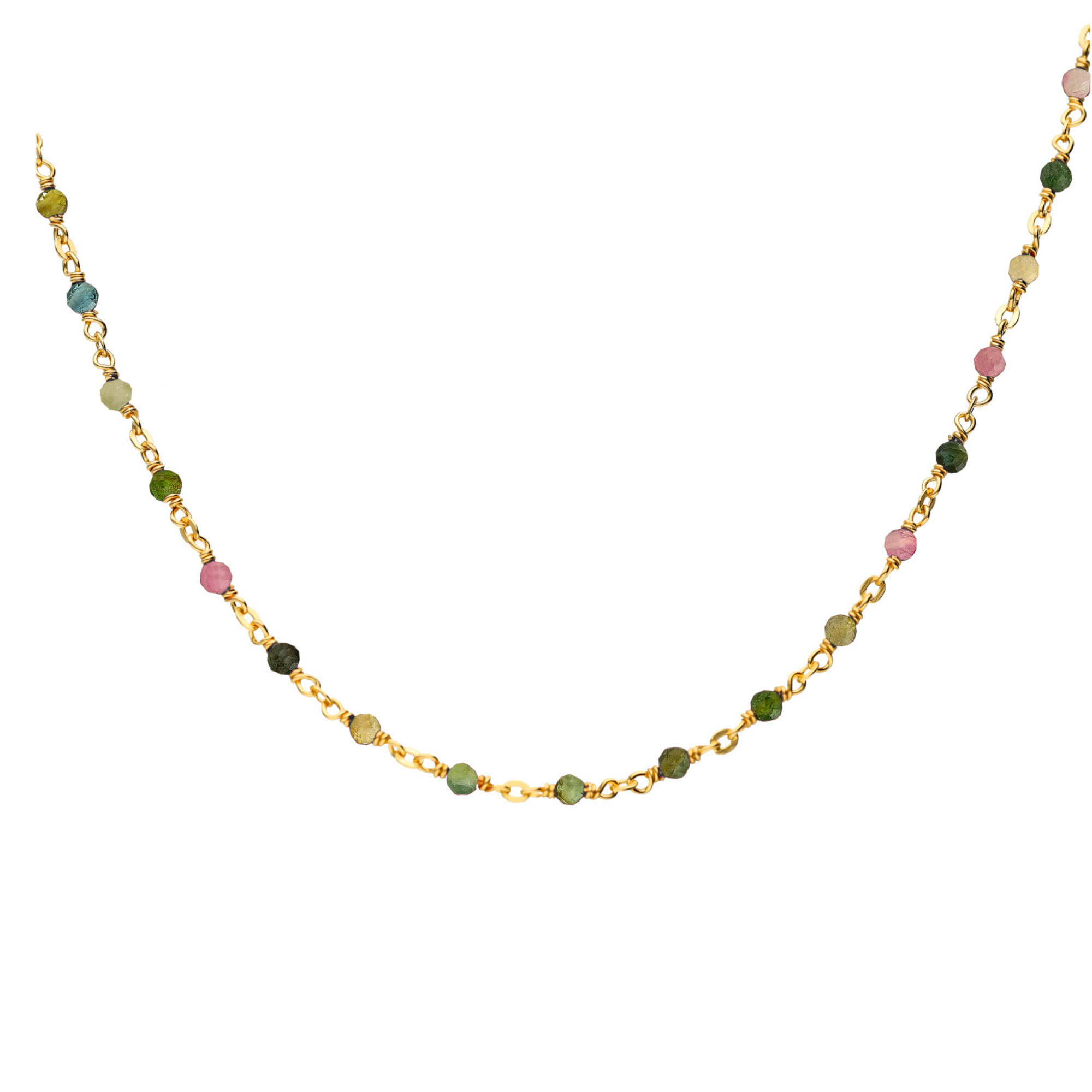 Collier argent doré et pierres naturelles tourmaline long 59 cm