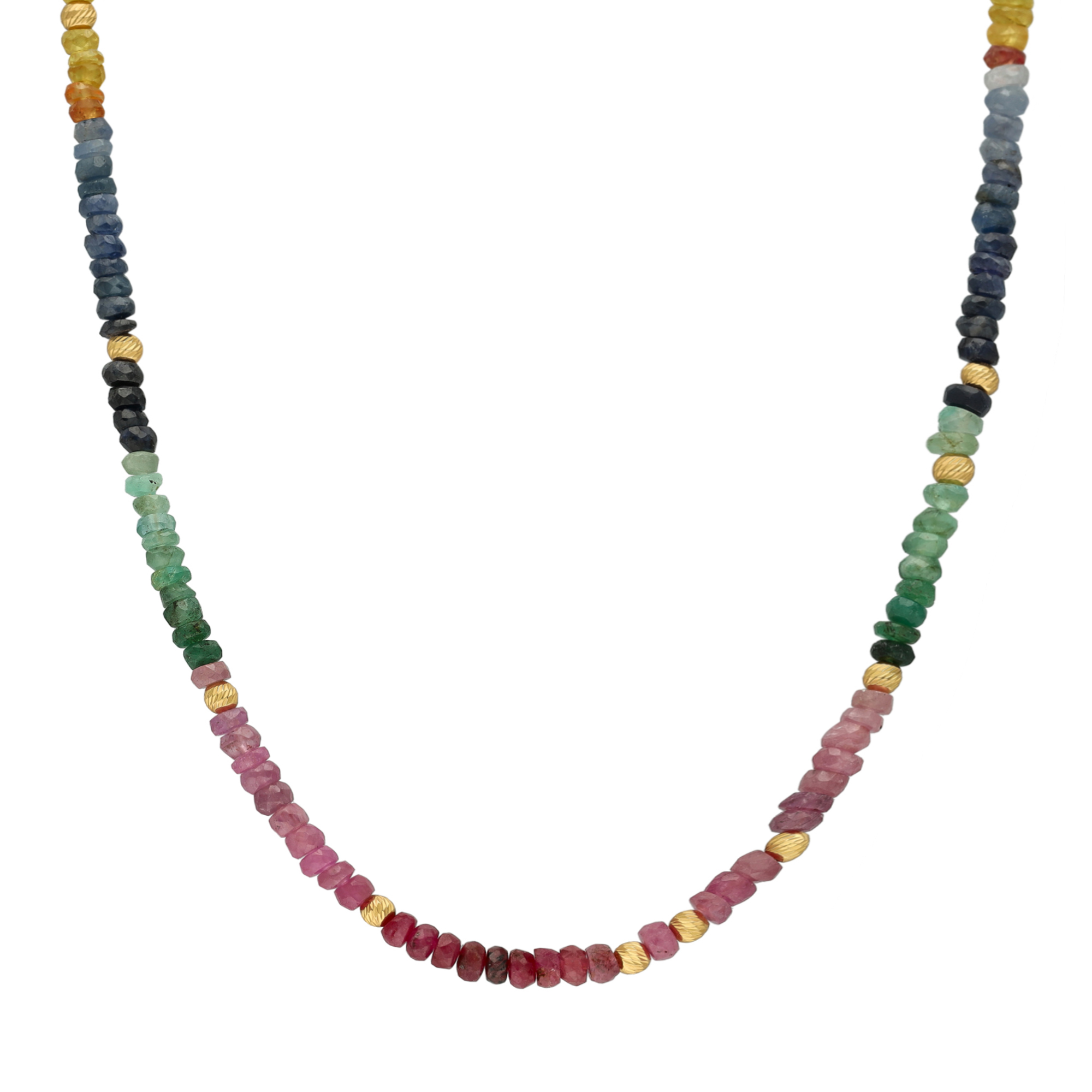 Description du produit Collier argent doré et pierres précieuses saphir rubis émeraude