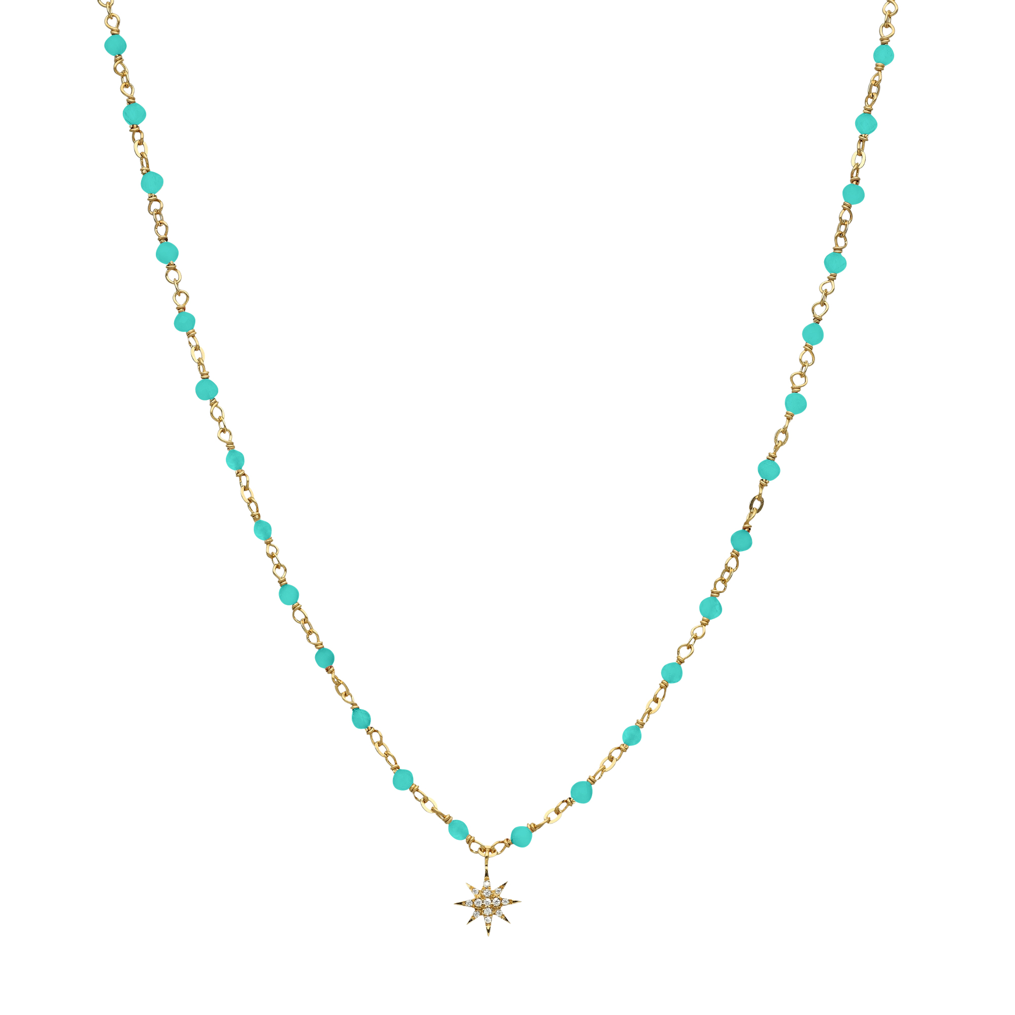 Avec son étoile en zirconium blanc et ses perles naturelles amazonite, ce collier apportera une touche de sophistication à votre look, que ce soit pour une occasion spéciale ou au quotidien. L’association de la couleur de la pierre amazonite avec le métal doré crée un contraste harmonieux et intemporel qui saura mettre en valeur votre féminité et votre élégance. Laissez-vous séduire par ce bijou d’exception qui reflète votre personnalité et votre style unique.