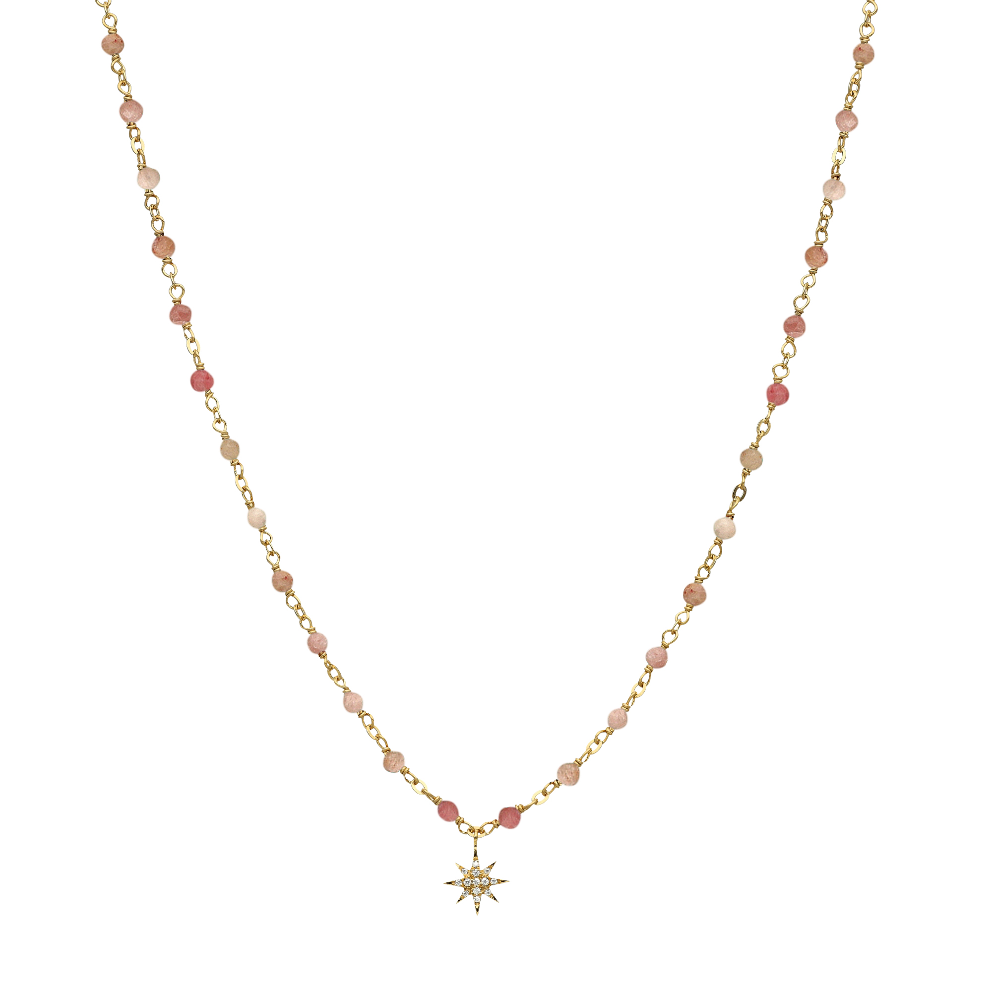 Découvrez notre magnifique collier argent doré étoile en zirconium blanc et perles naturelles quartz rose fraise