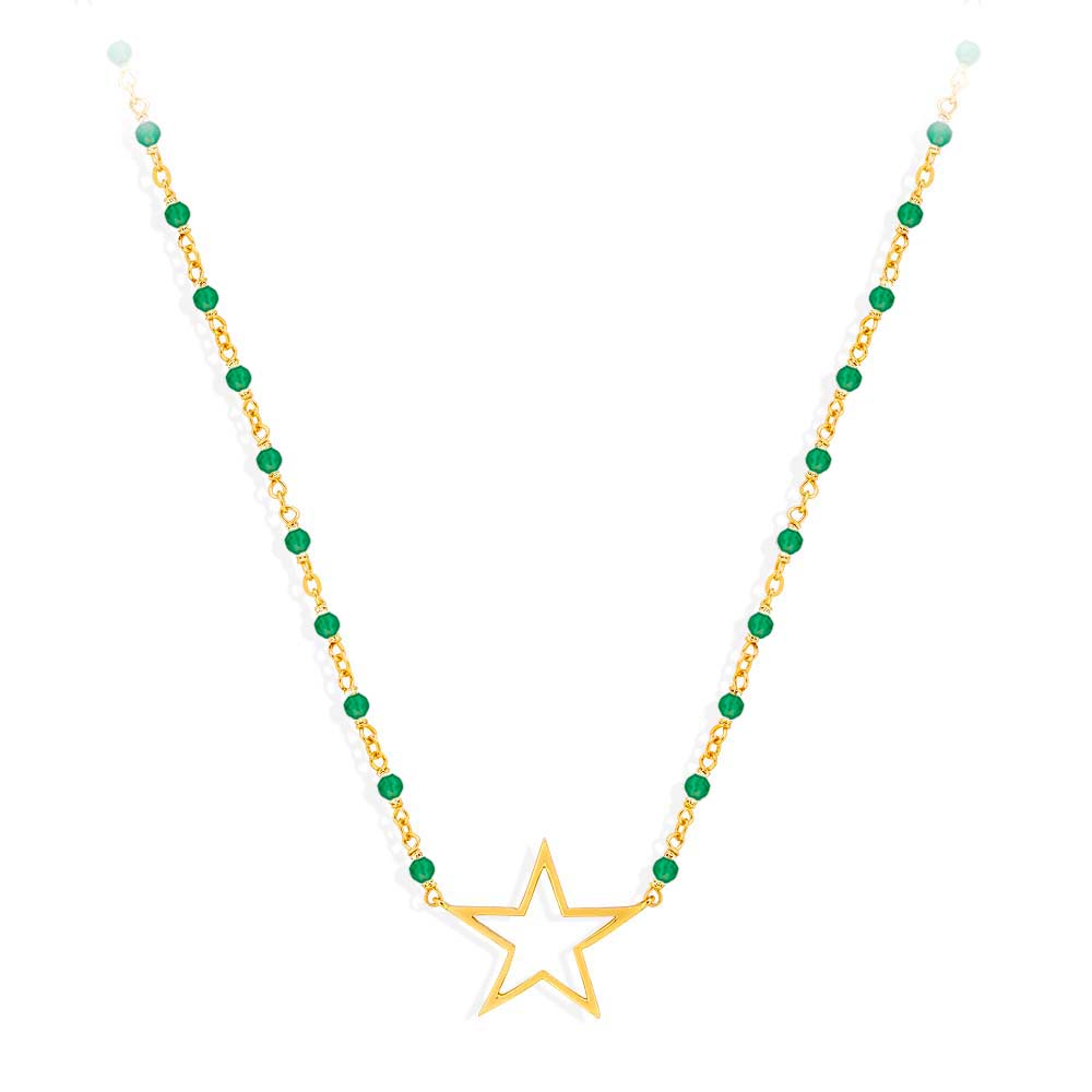 Le collier argent doré étoile et pierre onyx vert est un bijou d’une élégance rare. Sa pierre onyx vert apporte une touche de sophistication et de mystère à votre tenue, tandis que son métal doré ajoute une touche de luminosité et de glamour. Fabriqué en argent 925/1000, ce collier de qualité saura mettre en valeur votre féminité et votre goût pour les pièces uniques.