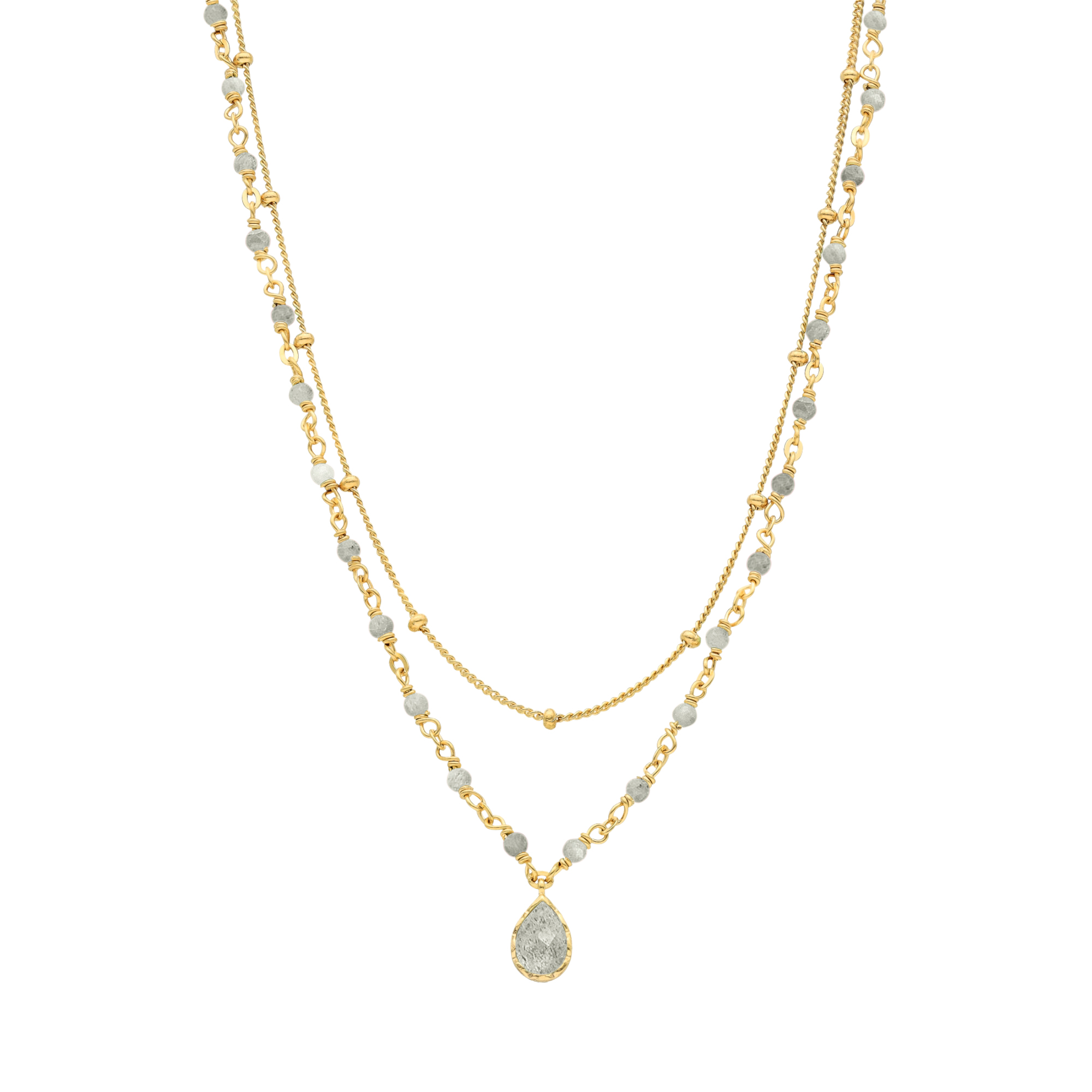 Le collier argent doré goutte doubles chaînes pierres labradorite est un bijou d’une élégance rare, parfait pour sublimer toutes vos tenues. Sa pierre naturelle de labradorite, d’un gris profond et mystérieux, apporte une touche de sophistication à votre look. La finesse des chaînes doubles en argent doré 925/1000 souligne avec délicatesse la beauté de cette pierre précieuse, pour un style à la fois moderne et intemporel.