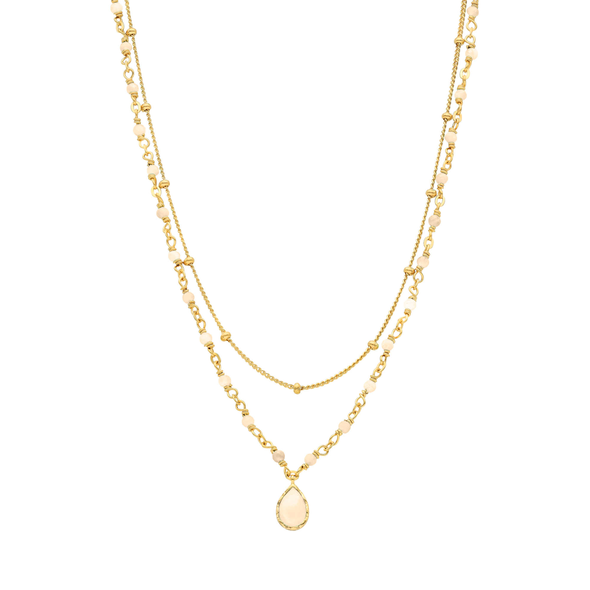 Collier argent doré goutte doubles chaînes pierres opale rose