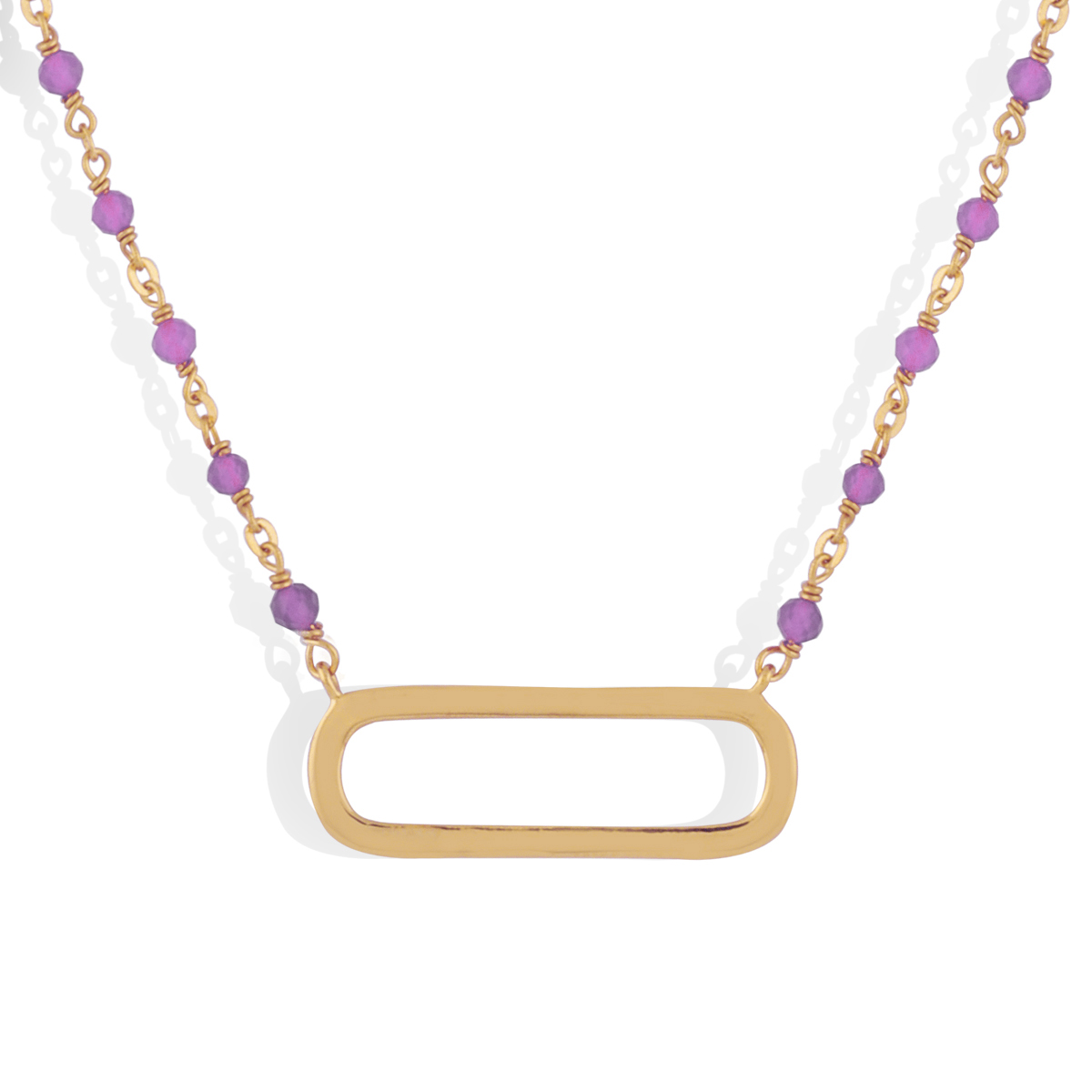 Collier argent doré lingot et pierres naturelles amethyste