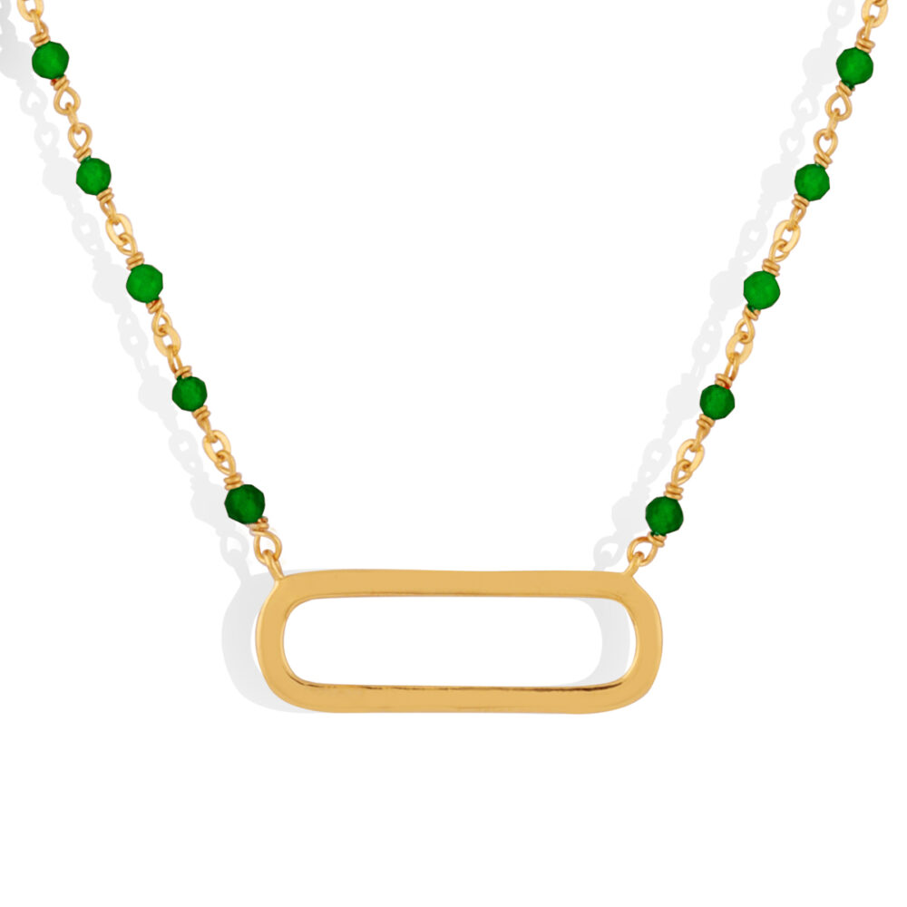 Collier argent doré lingot et pierres naturelles onyx vert