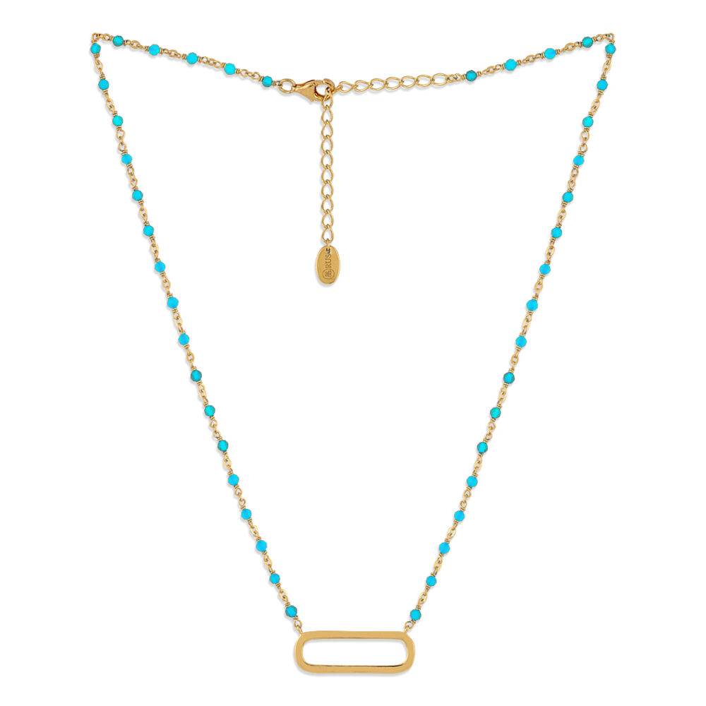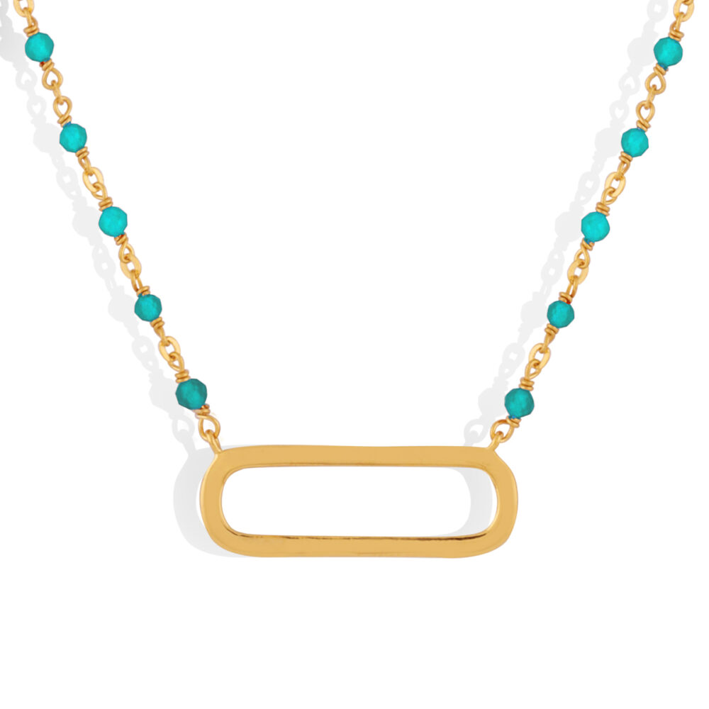 Collier argent doré lingot et pierres naturelles turquoise