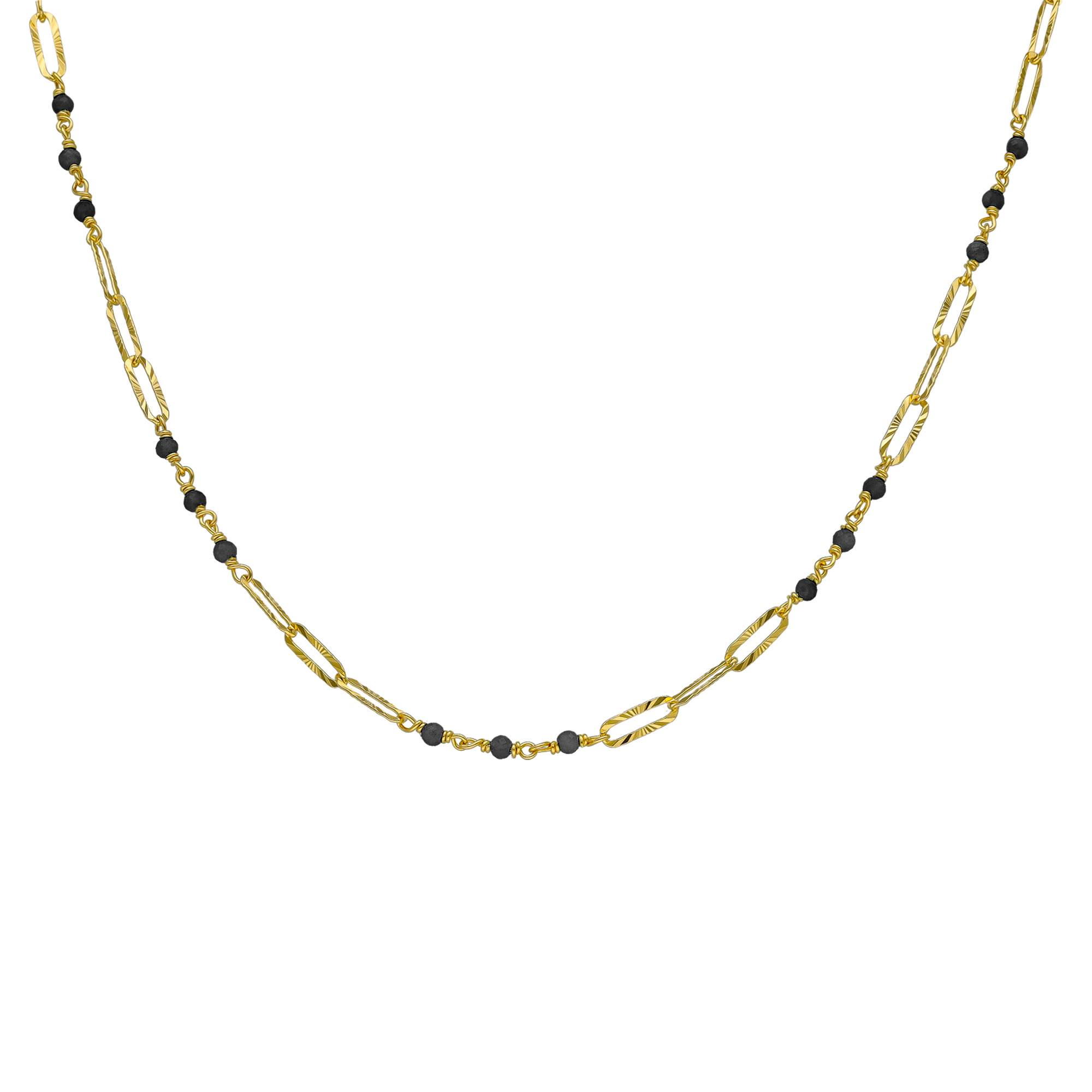 Collier argent doré maillon pierre spinelle noir