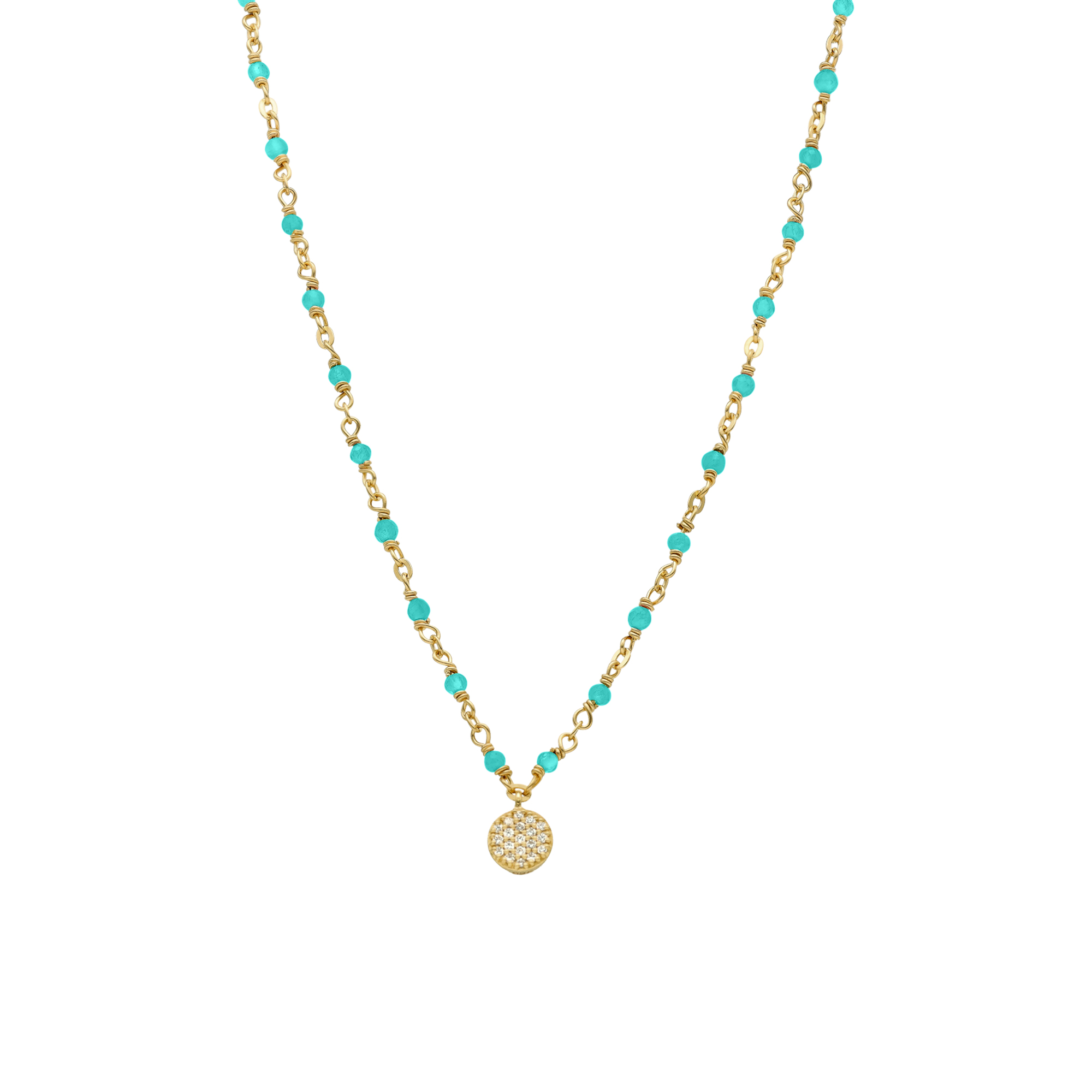 Les pierres turquoise serties dans ce collier lui confèrent une véritable touche d’authenticité et de caractère. Symbole de sagesse et de protection, la turquoise est une pierre précieuse aux propriétés apaisantes et bienfaisantes. En portant ce collier, vous pourrez bénéficier des vertus des pierres naturelles tout en ajoutant une note de couleur et de lumière à votre look.