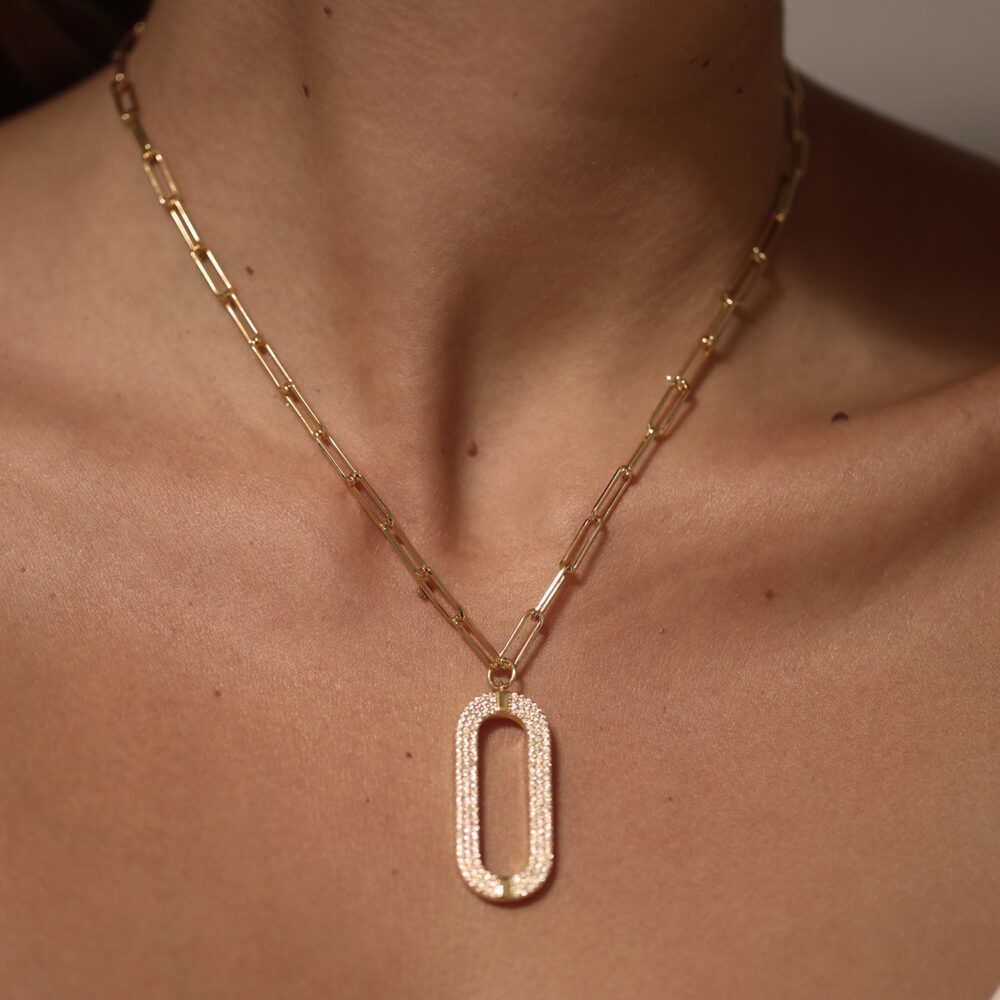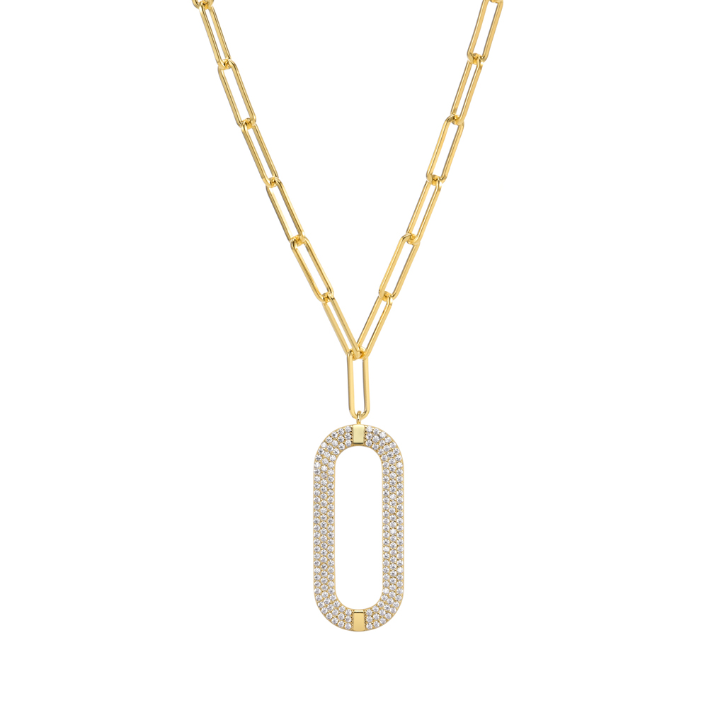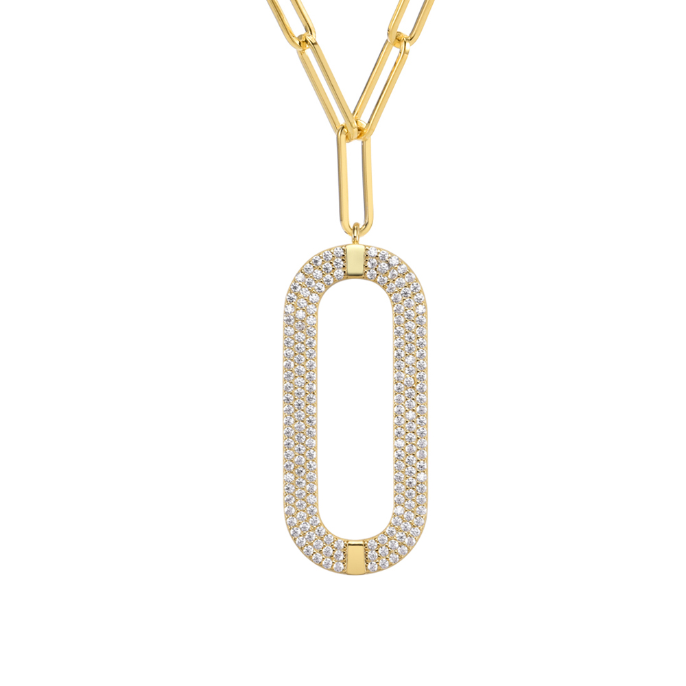 Un collier argent doré ovale sertie de zirconiums blanc pour sublimer votre féminité