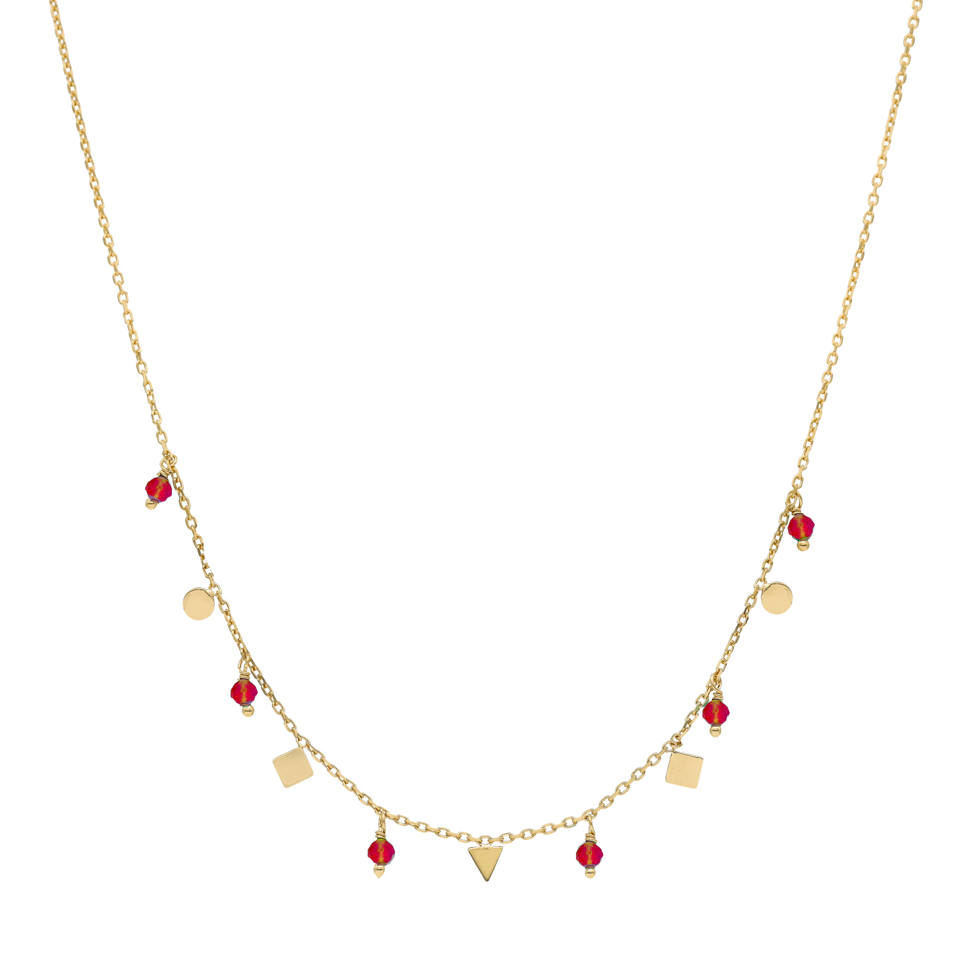 Collier argent doré pampilles de forme geometrique et pierre onyx rouge