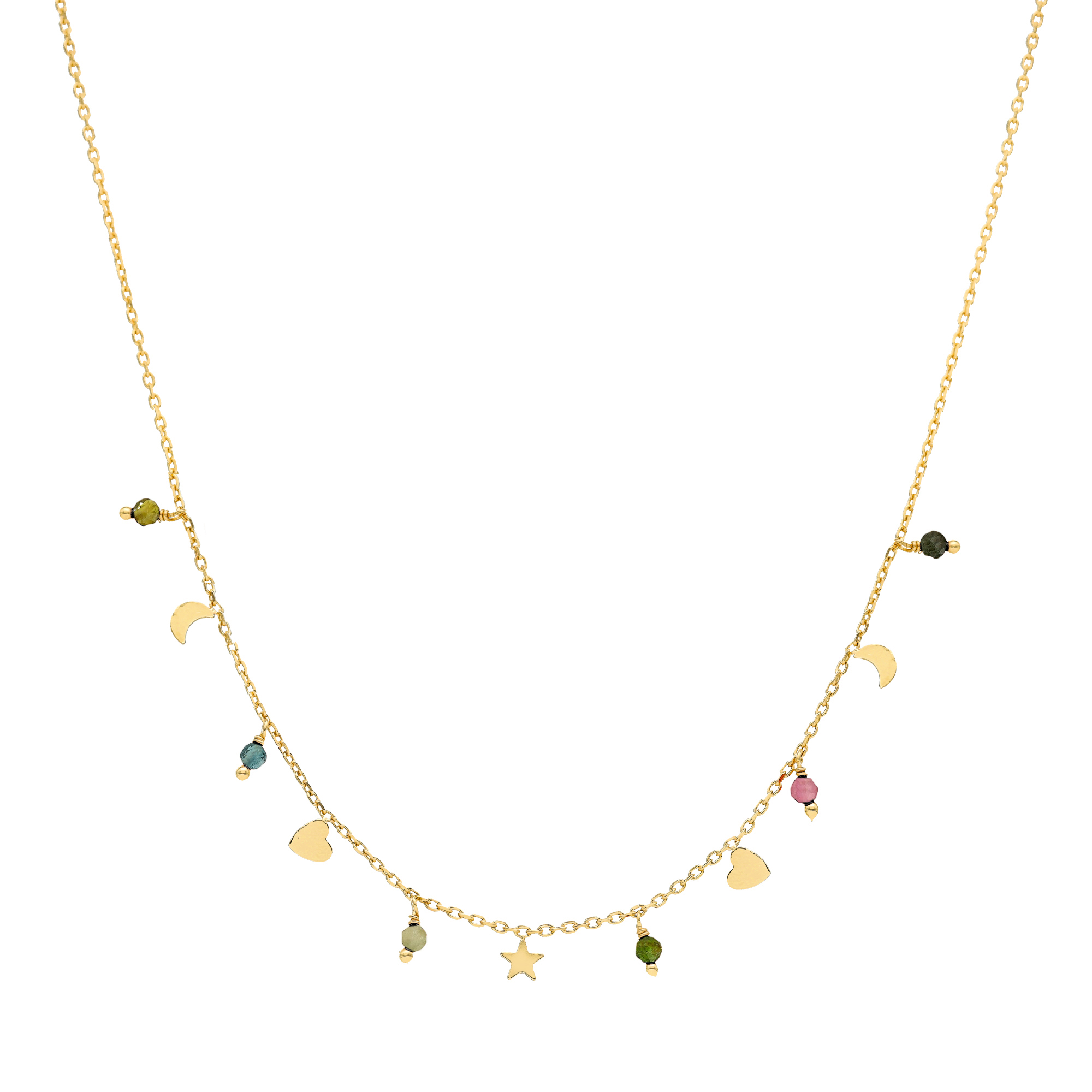 Découvrez notre collier argent doré pampilles de forme lune cœur et pierre tourmaline