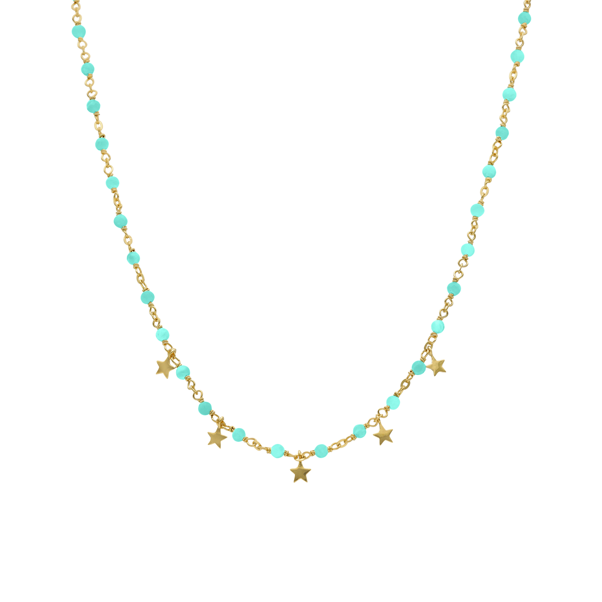 Collier argent doré pampilles étoiles et pierres amazonite : une touche de féminité et d’élégance