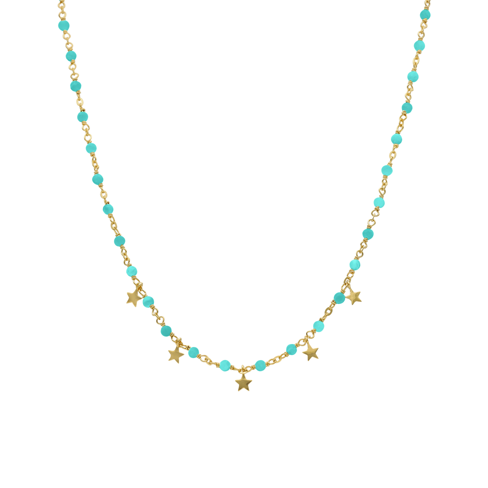 Collier argent doré pampilles étoiles et pierres turquoise : un bijou unique