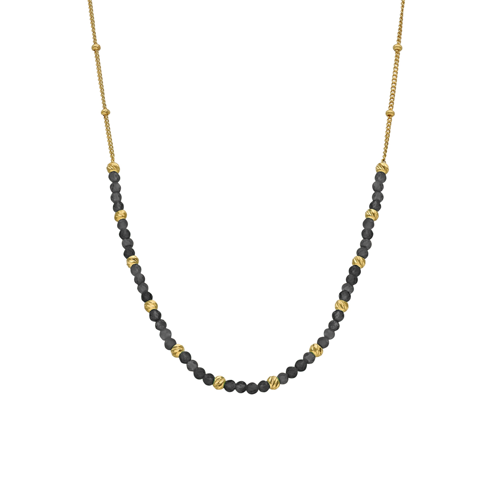 Collier argent doré perles dorée et pierres spinelle noire