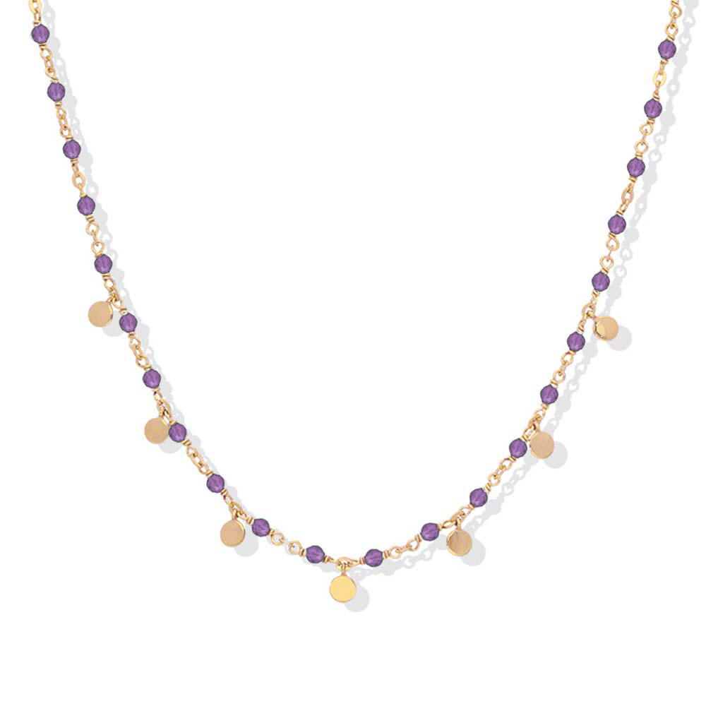 Collier argent doré petites perles pampilles et pierre améthyste