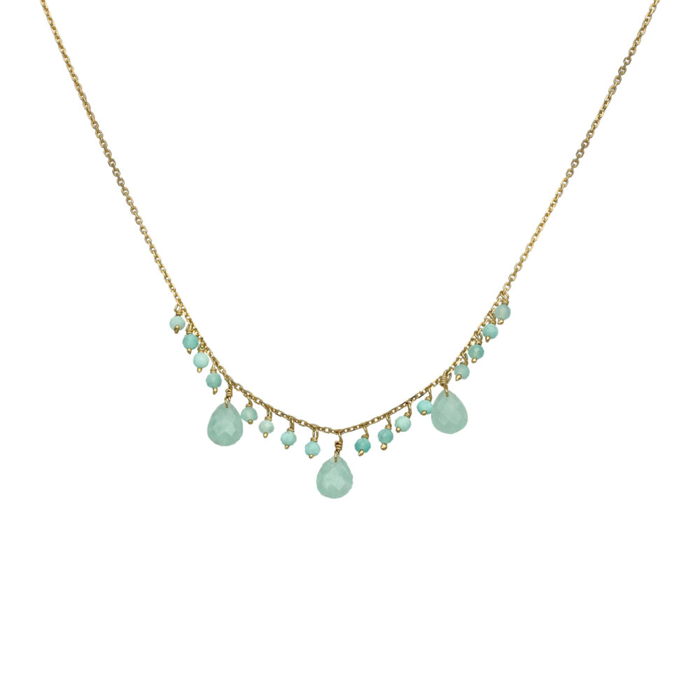 Sublimez votre look avec le collier argent doré pierre pampille amazonite