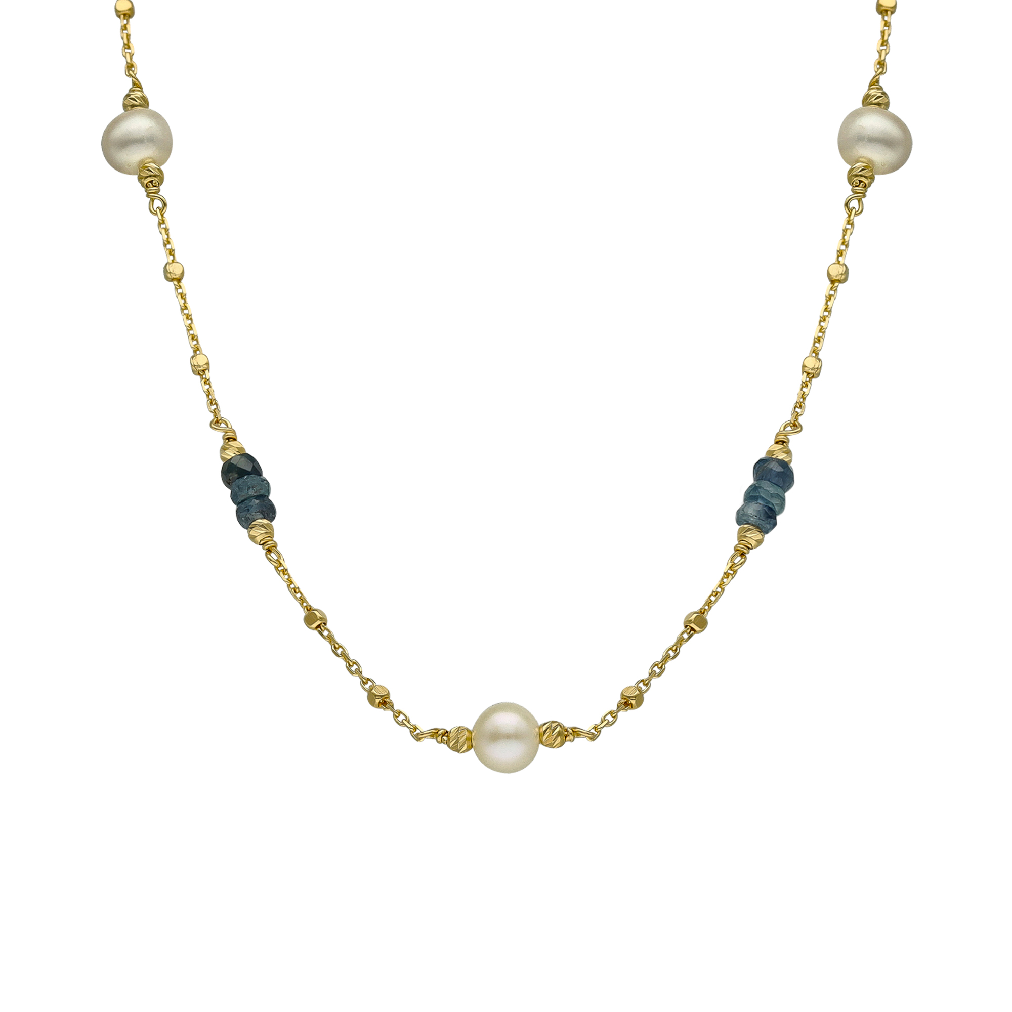 Collier argent doré pierres précieuses saphir et perle naturelle blanche