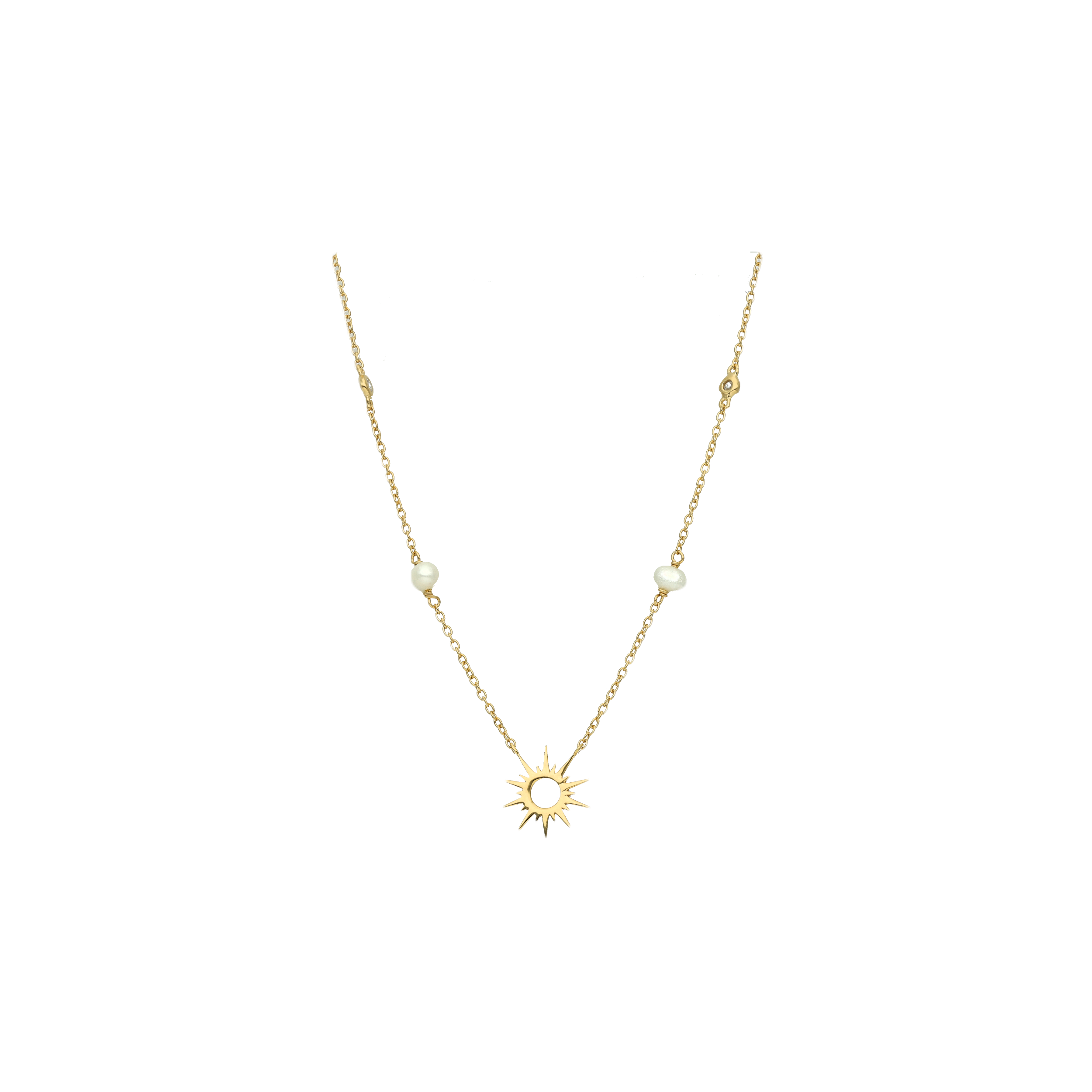 Sublimez votre tenue avec le collier argent doré soleil perles blanches