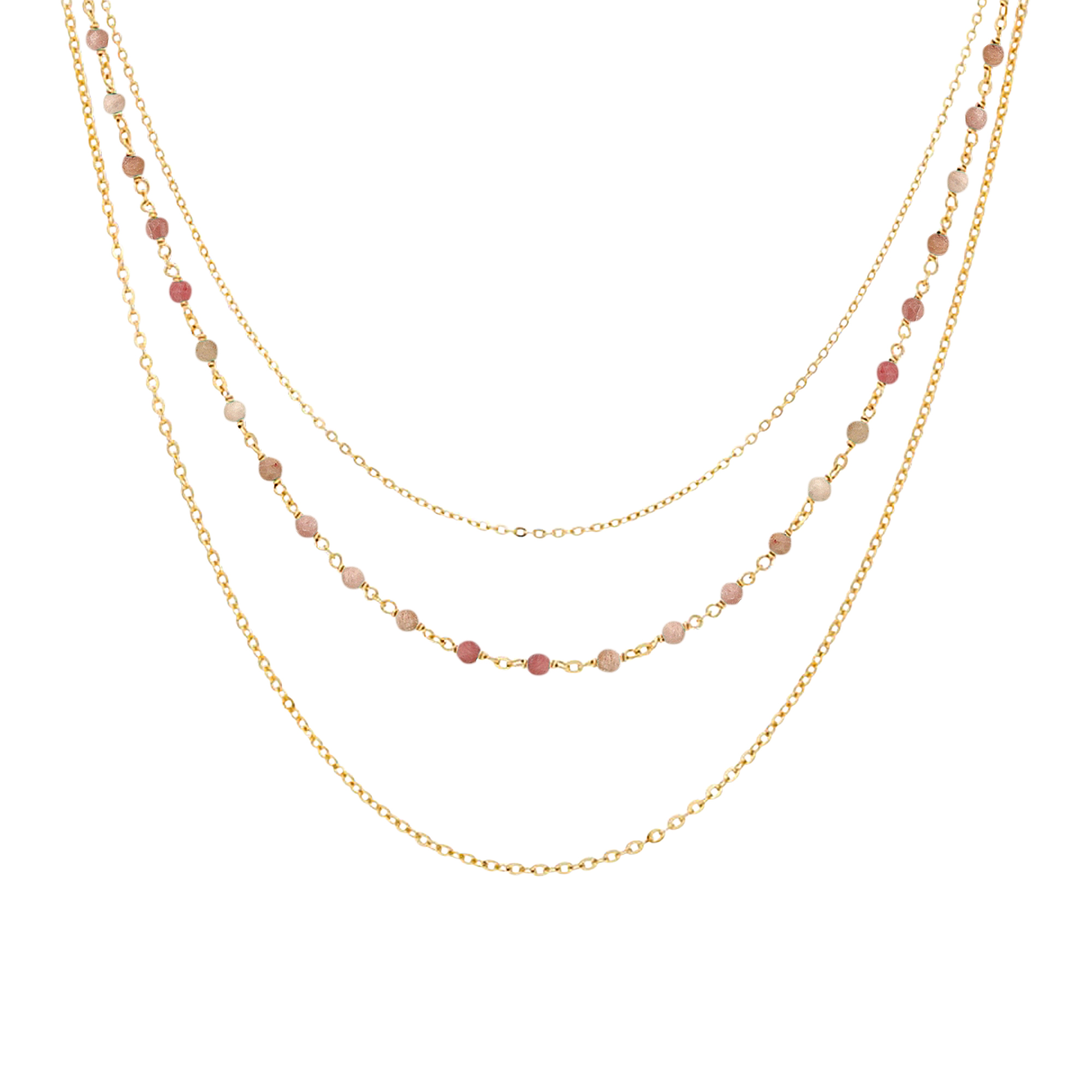Ce collier argent doré triple est non seulement magnifique, mais aussi très polyvalent. Que vous le portiez pour une occasion spéciale ou pour égayer votre tenue de tous les jours, il ajoutera une touche d’élégance et de sophistication à votre look. Les petites perles en pierre quartz rose fraise apportent une touche de couleur subtile et raffinée, parfaite pour toutes les occasions.