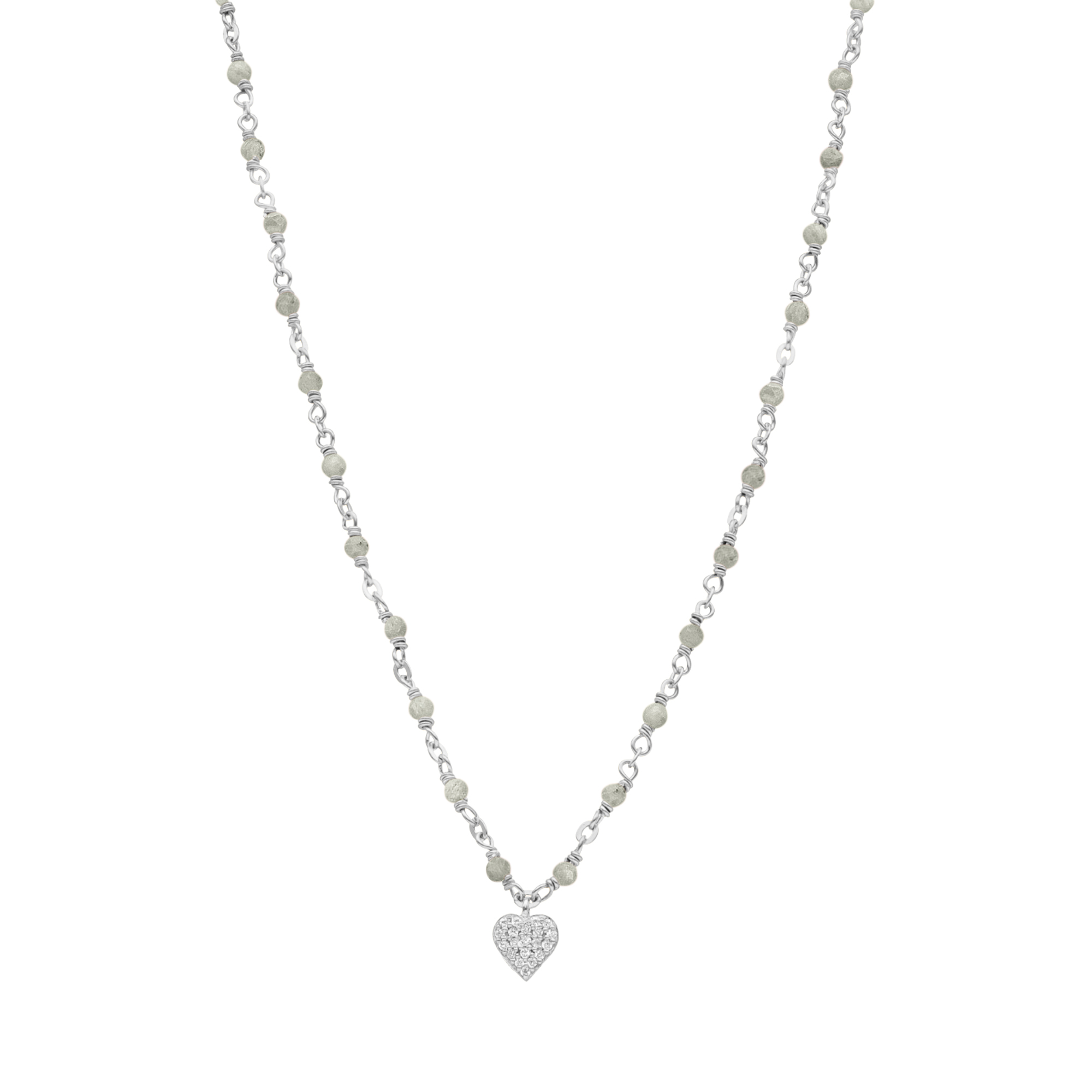 Le collier argent rhodié cœur diamanté et pierres labradorite est un bijou d’une rare élégance qui saura mettre en valeur votre beauté naturelle. La combinaison de l’argent 925/1000 et des pierres naturelles de labradorite crée un contraste saisissant, parfait pour toutes les occasions. La pierre de labradorite, d’un magnifique gris, apporte une touche de mystère et de sophistication à ce collier unique en son genre.
