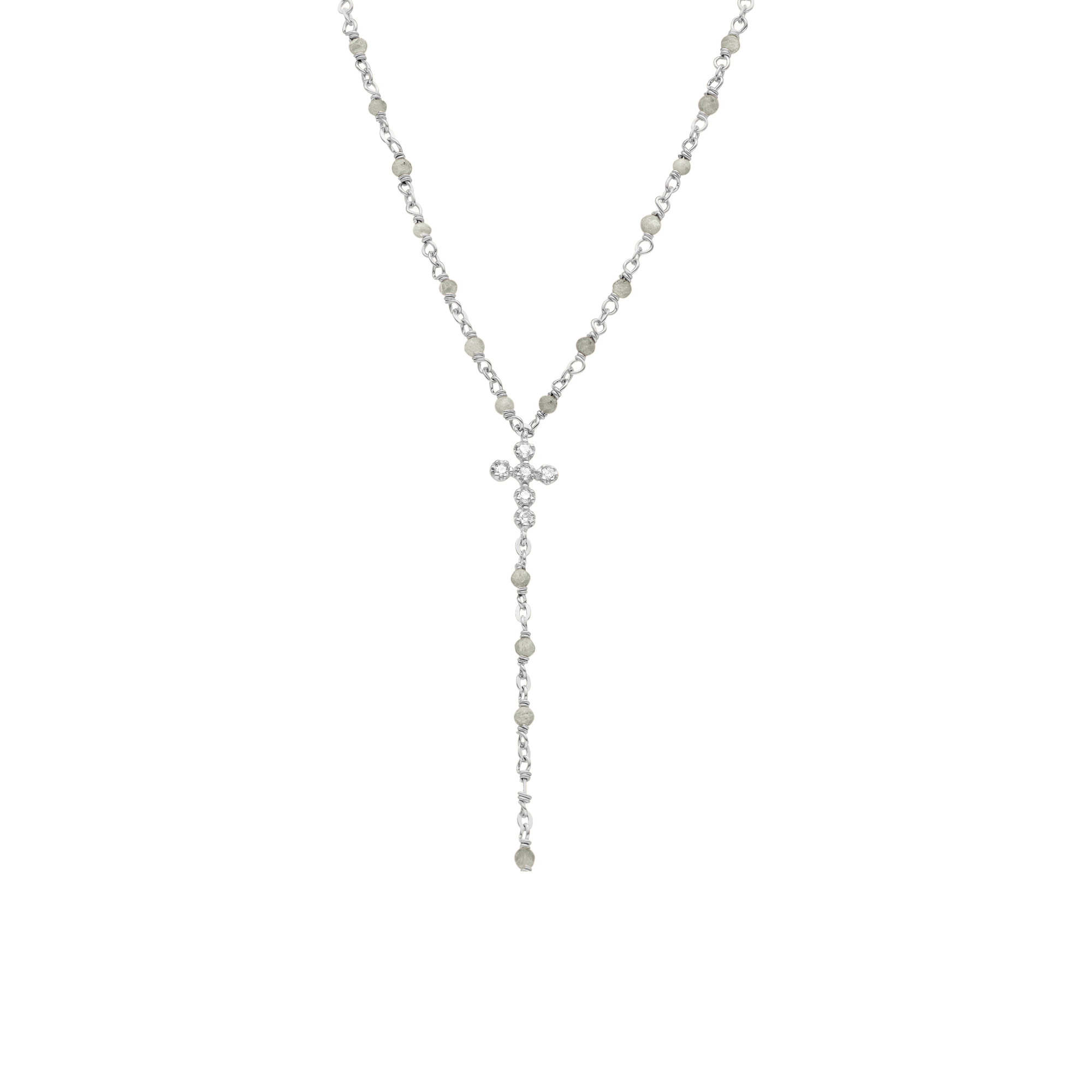Description du produit Collier argent rhodié cravate croix et pierres labradorite