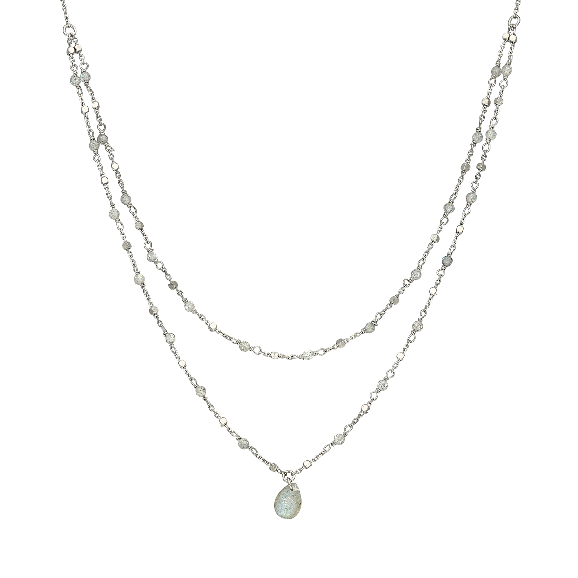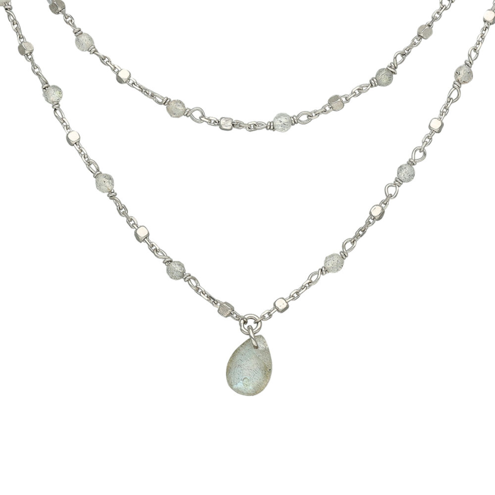 Sublimez votre féminité avec le collier argent rhodié double chaine goutte pierres naturelles labradorite