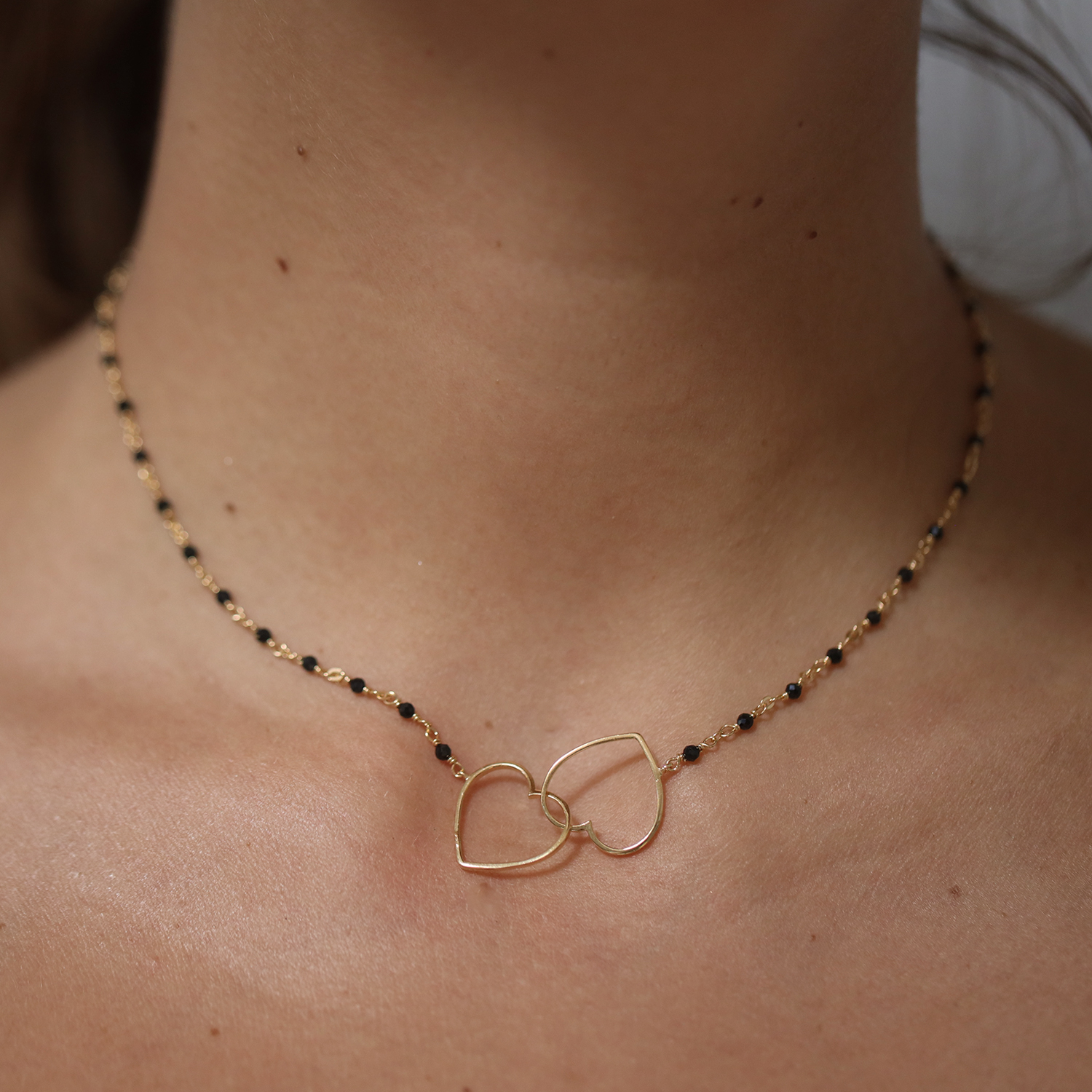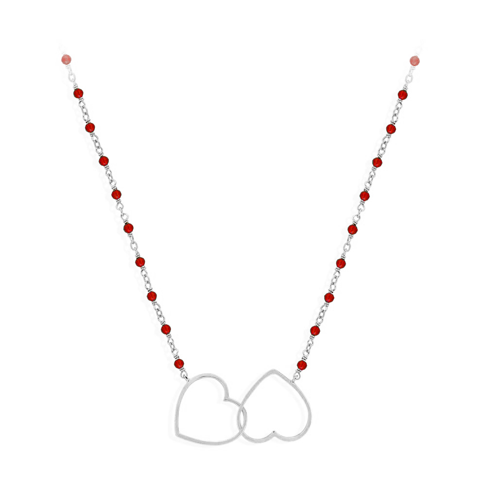 Les deux cœurs entrelacés symbolisent l’amour et l’union, faisant de ce collier un cadeau idéal pour exprimer vos sentiments à un être cher. La pierre rouge d’onyx apporte une touche de passion et de vitalité à l’ensemble, faisant de ce bijou un véritable symbole d’amour et de passion.