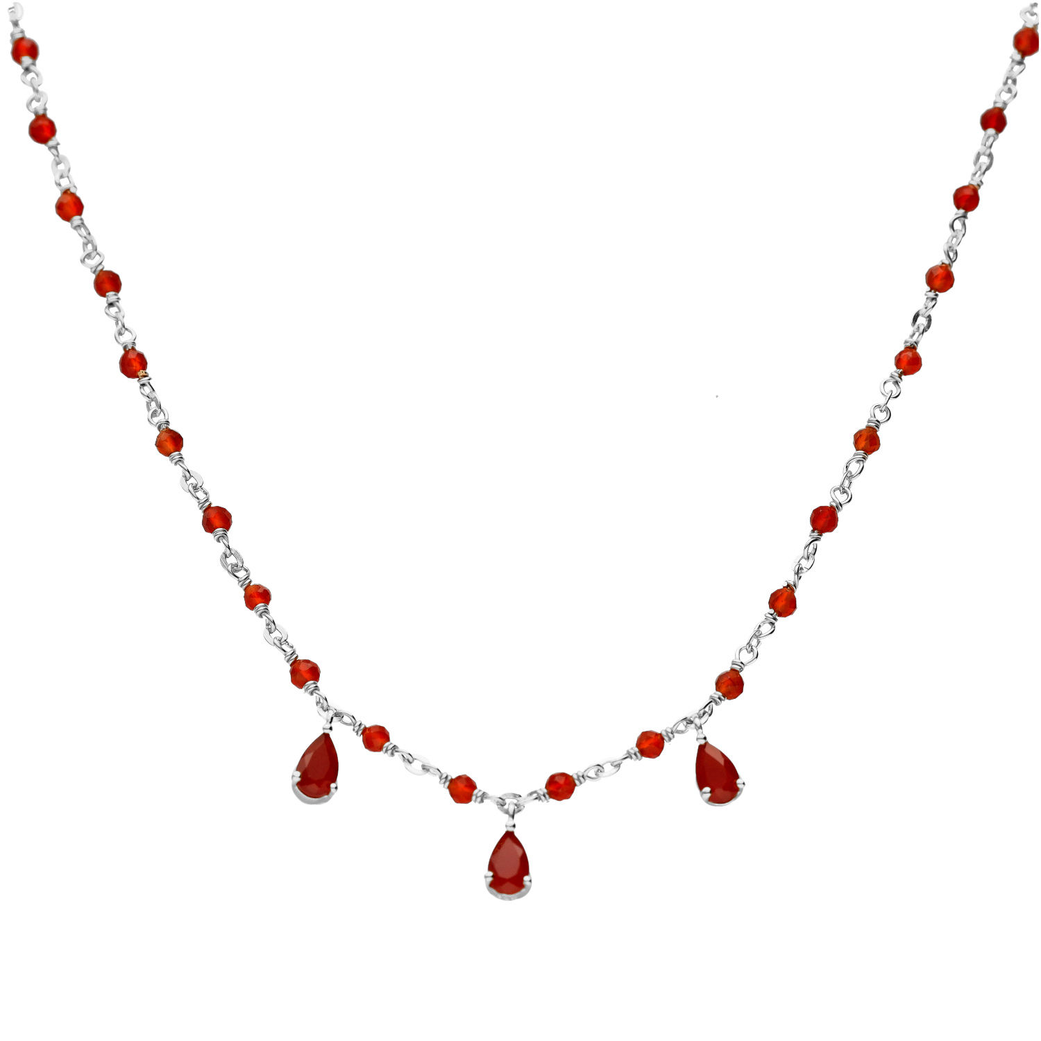 Collier argent rhodié et pierres naturelles onyx rouge