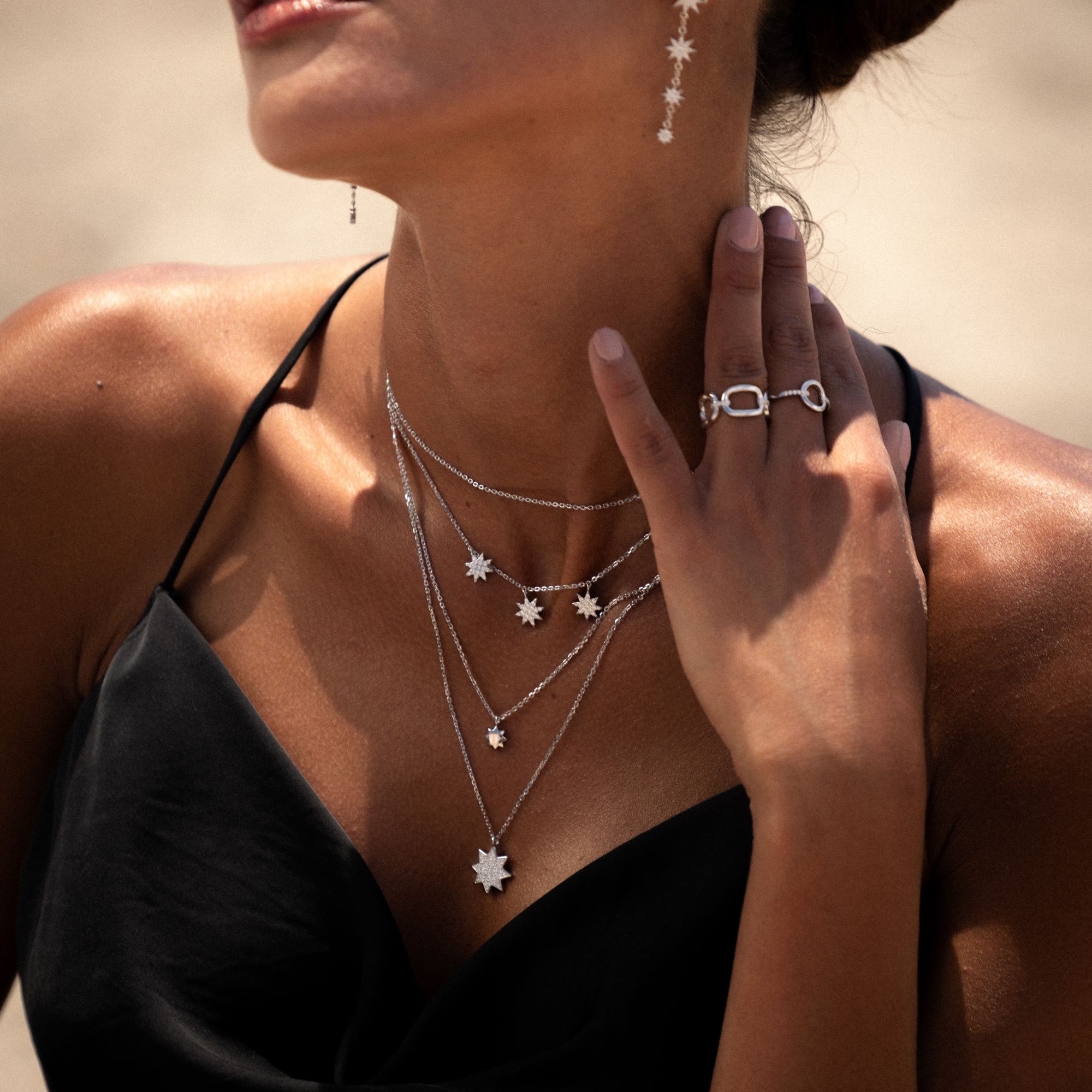 La délicate étoile sertie de zirconium blanc de ce collier apportera une touche de brillance à votre décolleté, attirant tous les regards. Sa couleur argent rhodié lui confère une élégance certaine, idéale pour toutes les occasions. Que ce soit pour une soirée chic ou pour une journée décontractée, ce collier saura s’adapter à votre style avec finesse.