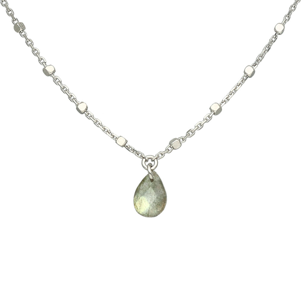 Collier argent rhodié goutte pierres naturelles labradorite